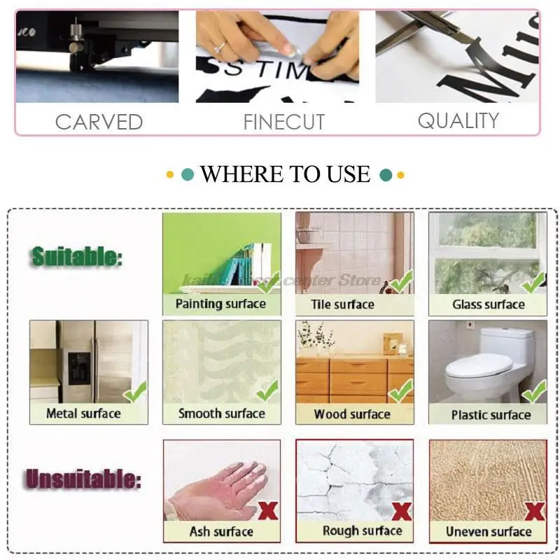 Выберите гладкую, чистую и сухую поверхность.Снимите наклейку с листа один за другим.Поместите клей на плоскую поверхность, не нажимая на них, так что он позволяет снять их и снова переустановить.Если результат удовлетворяет вас, плотно прижмите к поверхности, нажав на воздушные пузырьки наружу.Размер: S:57x33 см/M: 72x42 см/L: 98x57см
