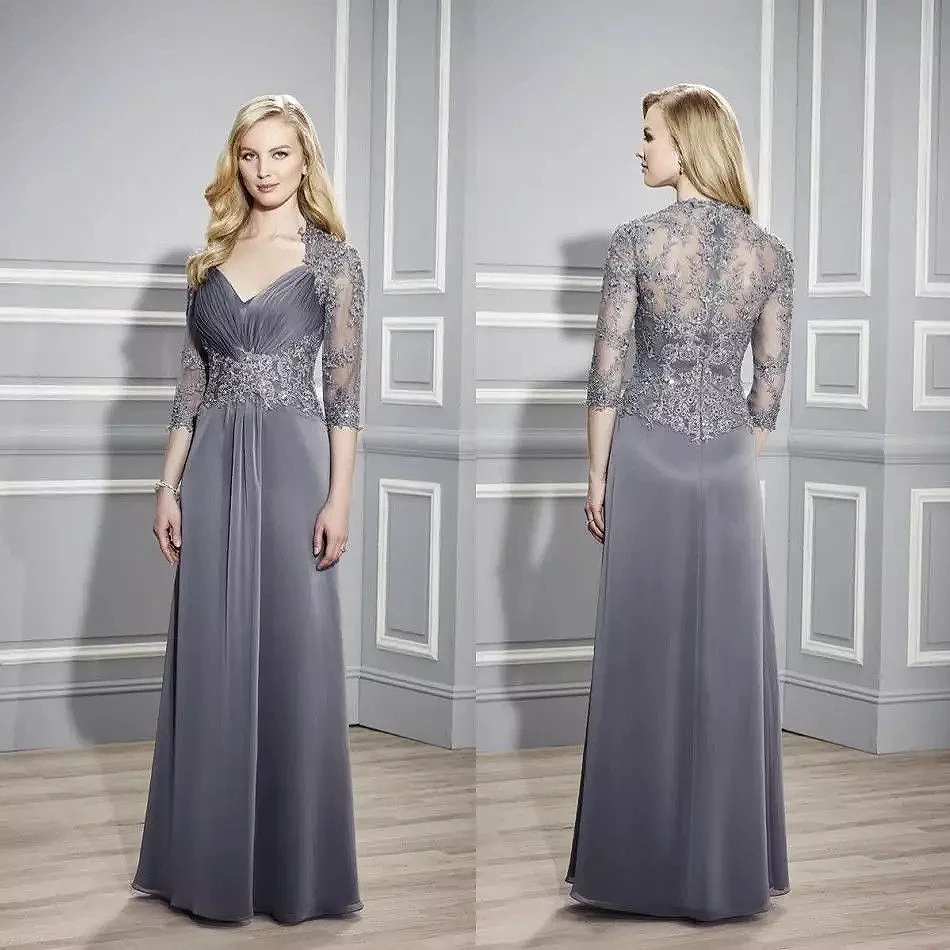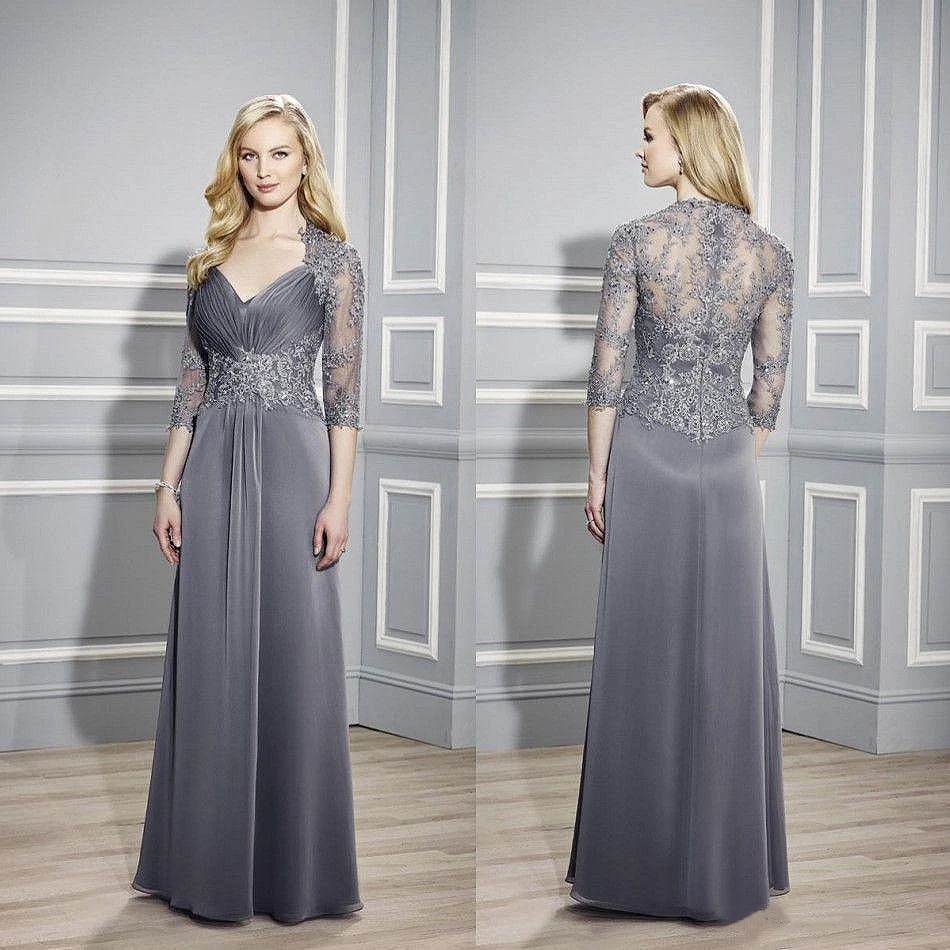 Роскошные серые платья для матери невесты, кружевное свадебное платье с полурукавами и бусинами для гостей, элегантные длинные наряды для матери жениха и вечеринки, 2022