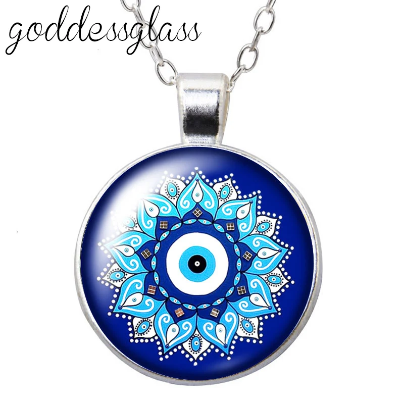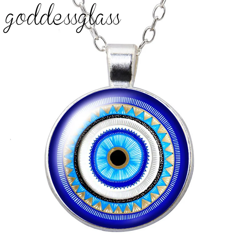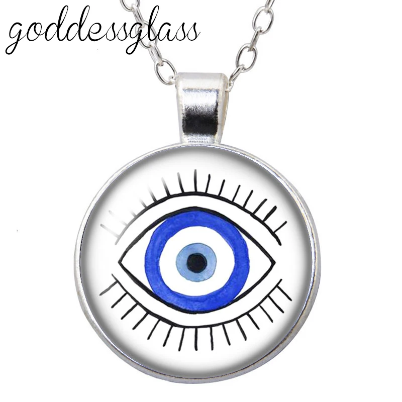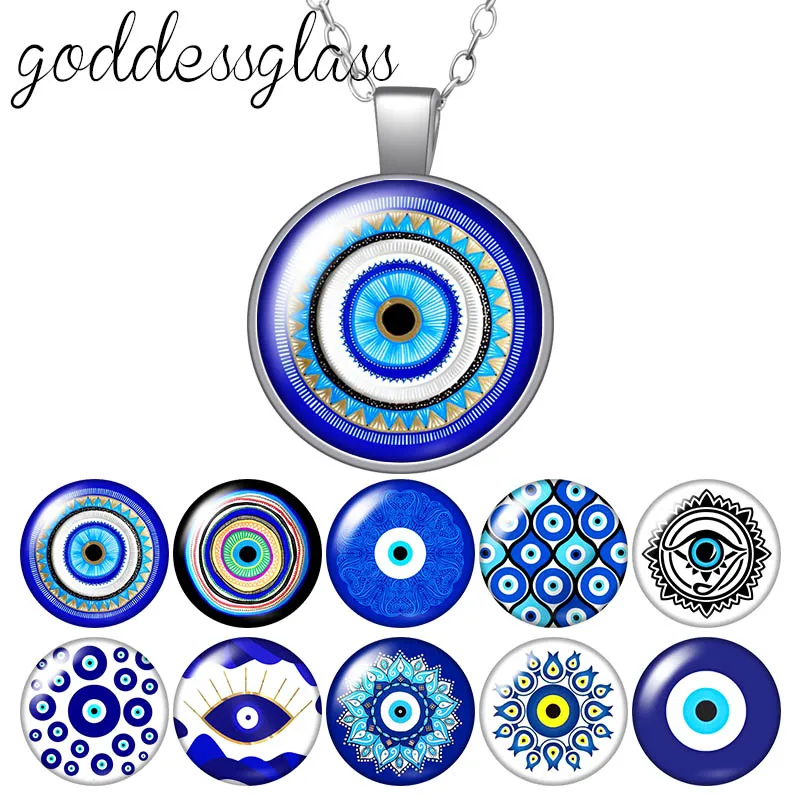 С клипсами Дурной глаз узоры религия Faith "Синеглазка" круглые стеклянные кабошоны разрисованные изделия из стекла с серебряным покрытиемподвеска с кристаллом ожерелье ювелирные изделия для подарка