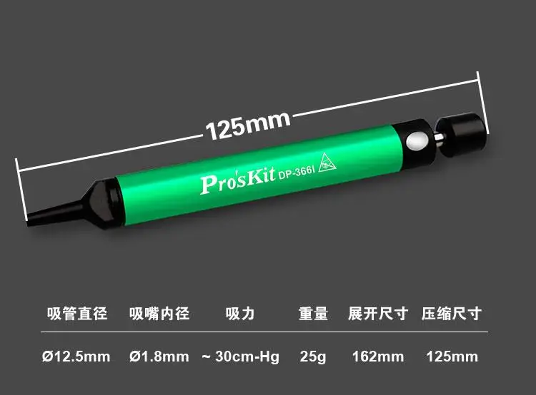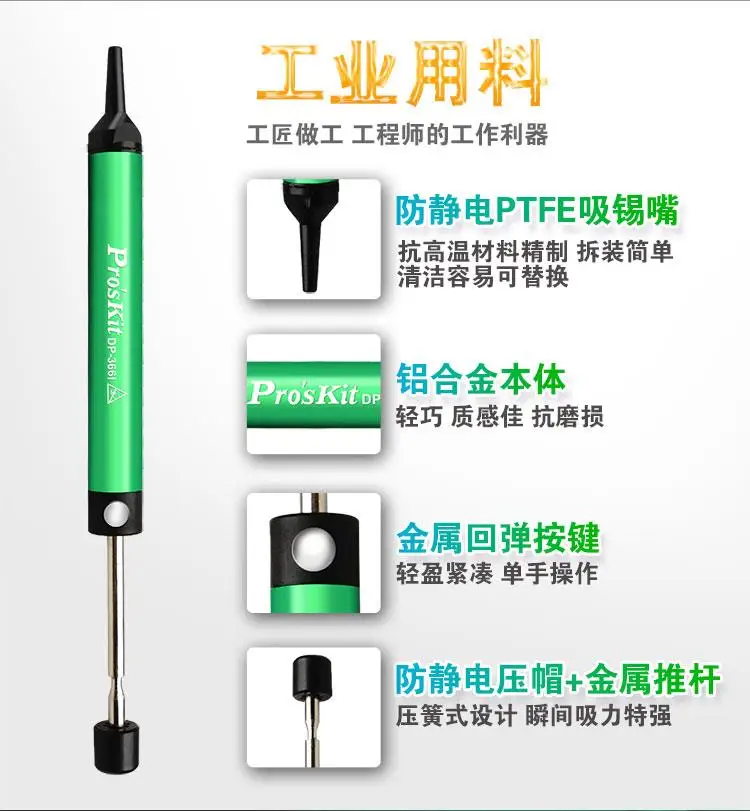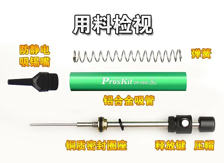 Pro'sKit DP-366I мини-насос для демонтажа олова из алюминиевого сплава, антистатический, компактный размер, Мощное всасывание