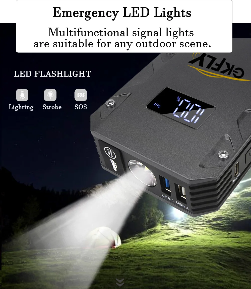 Начиная с мертвой батареи 12V бензиновый автомобиль и дизельных автомобилей за считанные секунды. Когда вы едете в неизвестном месте, и ваш автомобильный аккумулятор не работает, вы можете использовать этот автомобильный стартер, чтобы начать свой автомобиль.