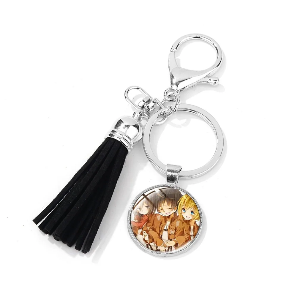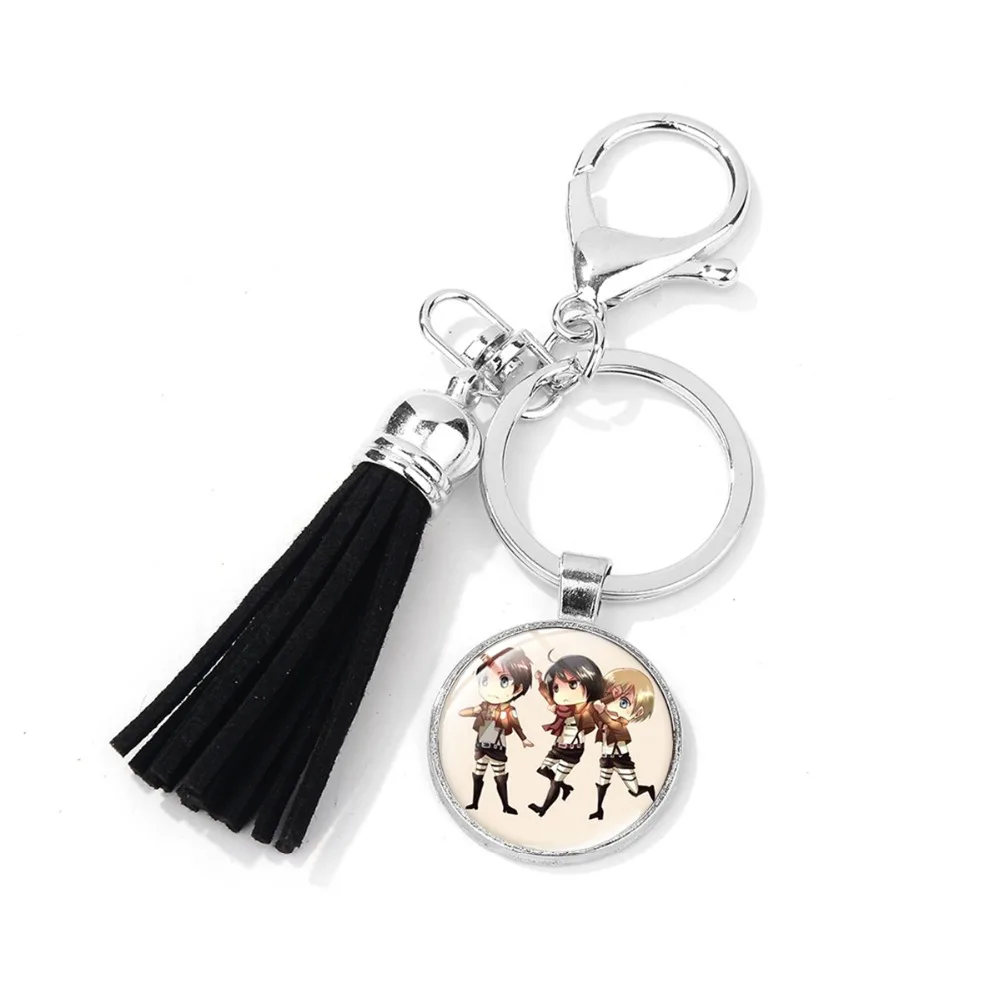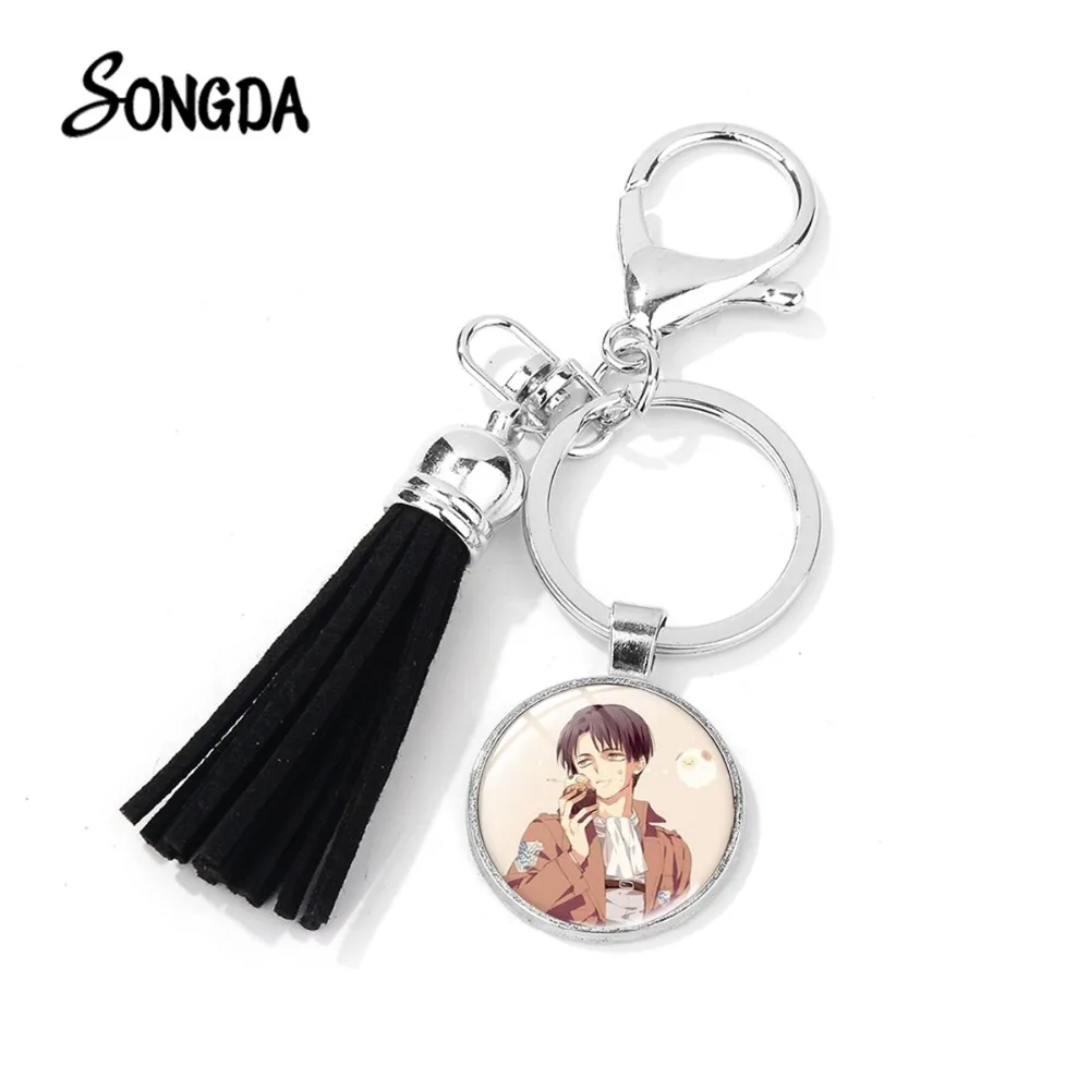 Обувь для косплея по аниме атака на Титанов тема брелок Классический Аллен Леви цифры мультфильм печатных кабошоны разрисованные изделия из стекла кожаный брелок для ключей с кисточкой для любителей аниме