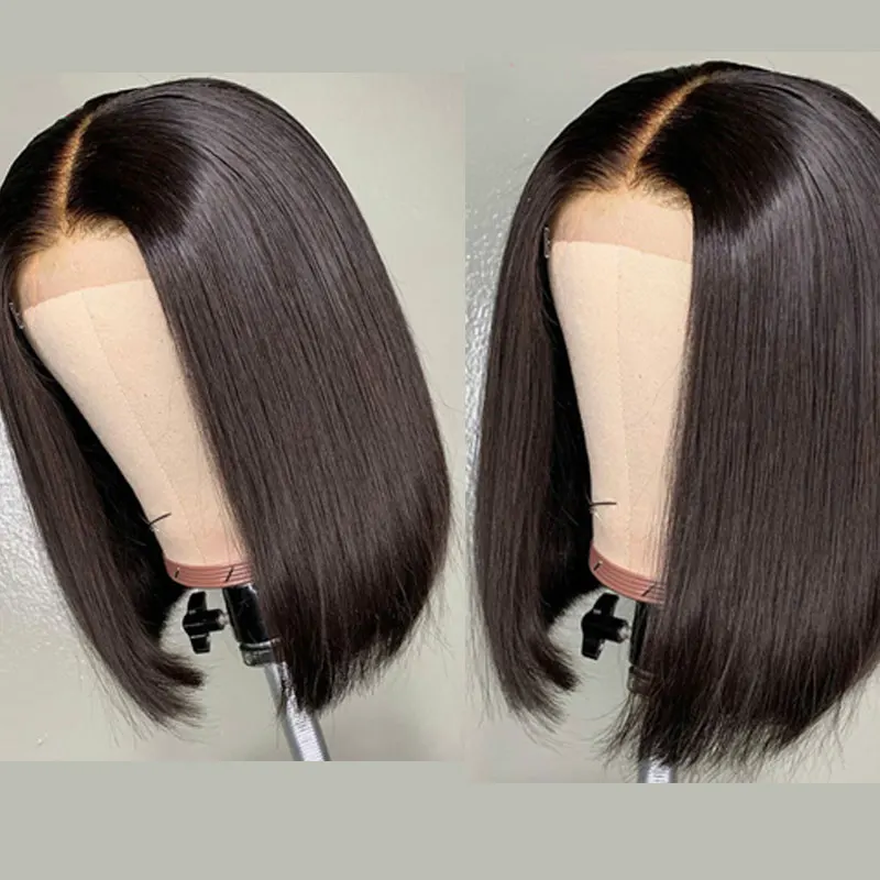 Парики Remy из человеческих волос, 13x4, парики из человеческих волос на сетке спереди, предварительно выщипанные короткие волосы, парик Боб, прямой парик на сетке спереди для черных женщин, черный парик