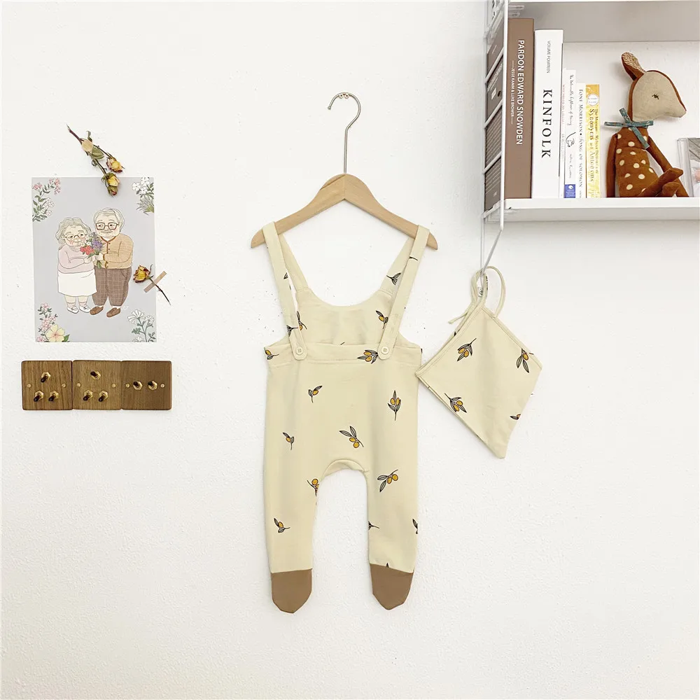 Детский комбинезон с капюшоном из двух предметов Новая Осенняя, для младенцев, для новорожденных, комбинезон без рукавов с цветочным принтом из хлопка для маленьких мальчиков и девочек, комбинезоны для новорожденных, модные