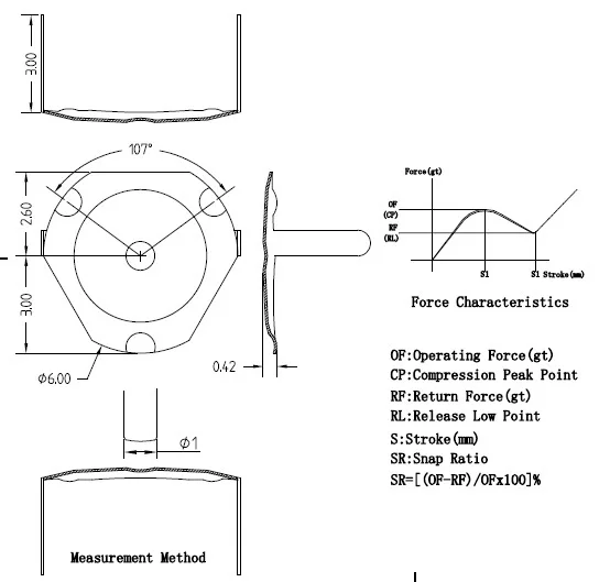 Характеристики6.0mm Diameter triangle tactile metal dome