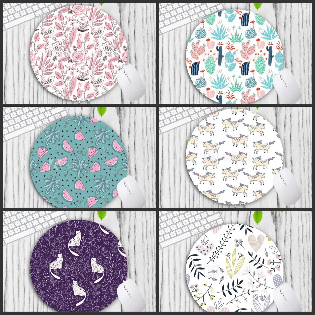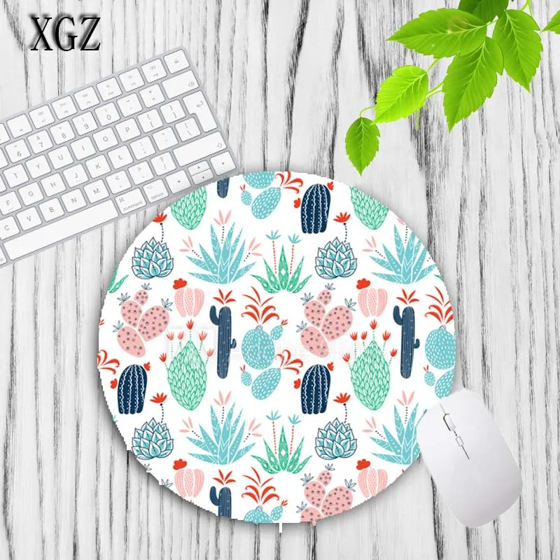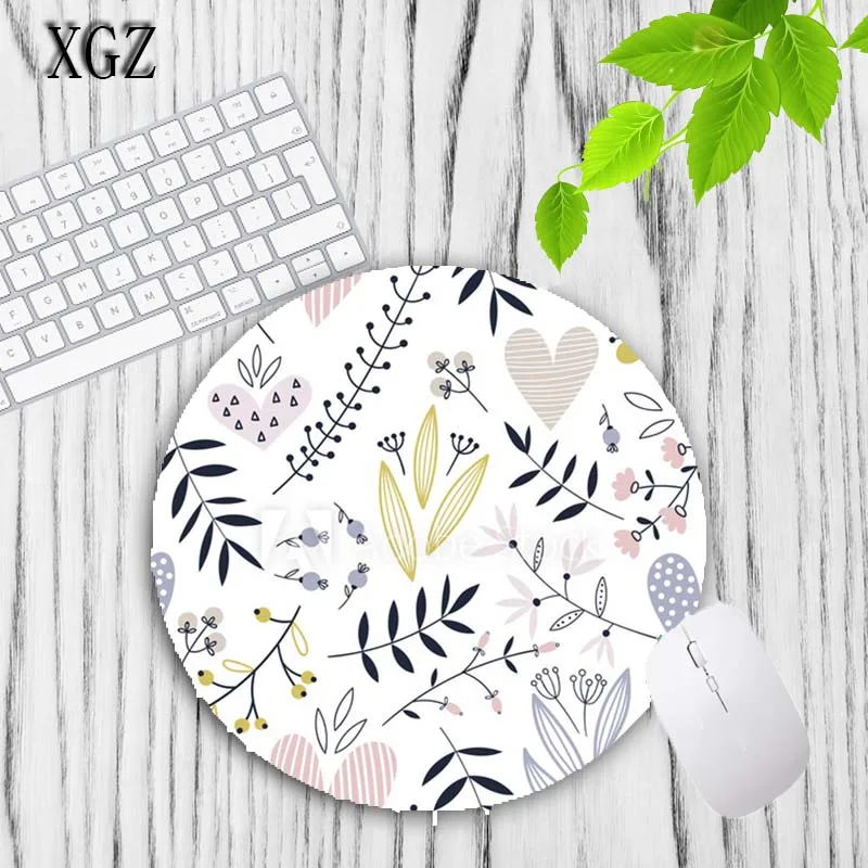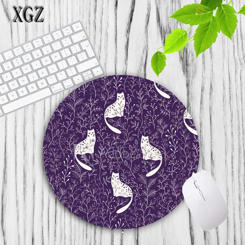Круглый коврик для мыши XGZ с рисунком тропических растений и кошек, коврик для мыши маленького размера с животными, игровой коврик для офиса и планшетов