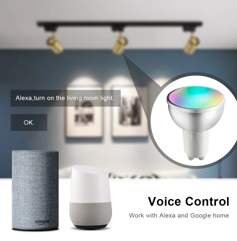 [Голосовое управление с Amazon Alexa ] -Светодиодная лампа GU10 совместима с Amazon Alexa и Google Home. Освободите руки и управляйте состоянием переключателя непосредственно через голос. Требуется Android и IOS.