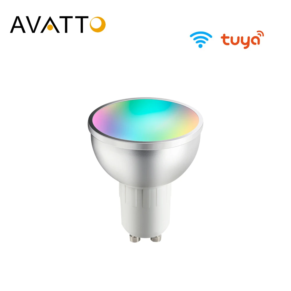 Смарт-лампа AVATTO Tuya GU10 с Wi-Fi, Светодиодная лампа 5 Вт RGB + WW + CW с функцией затемнения и таймером, волшебная лампа работает для Alexa, Google Home
