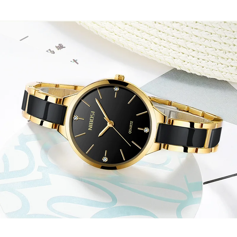 Женские наручные часы NIBOSI, с керамическим браслетом