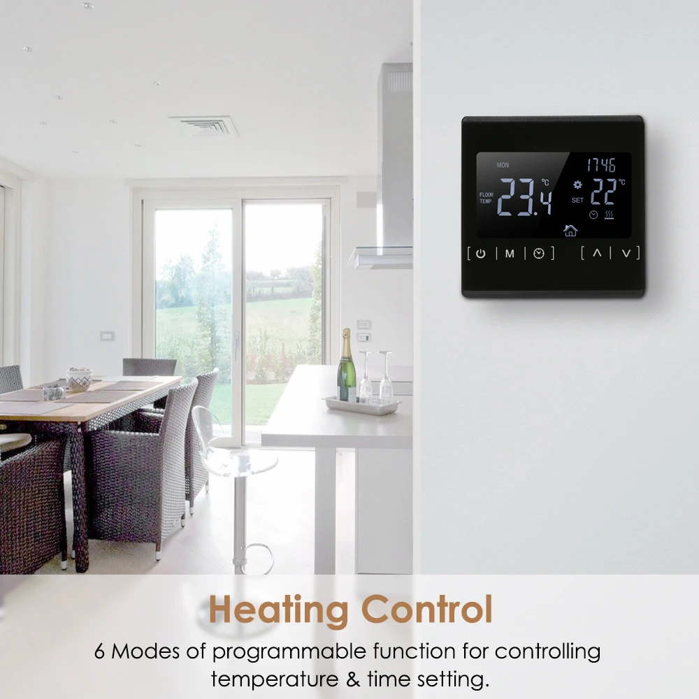 Терморегулятор для теплого пола, система нагрева воды с ЖК-дисплеем, сенсорный экран, AC85-240V для дома