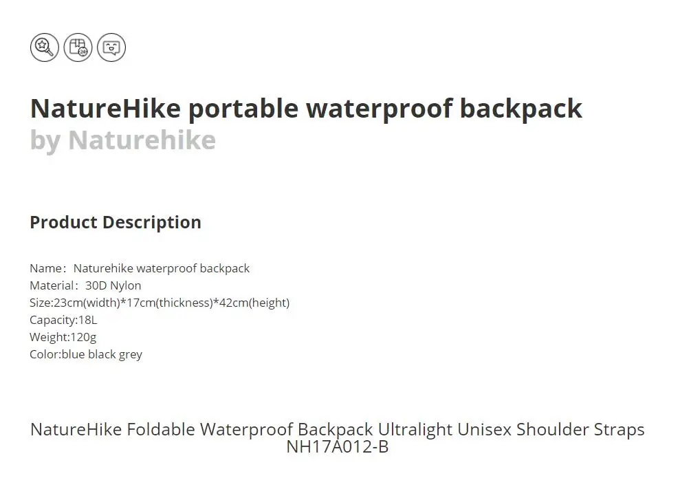 NatureHike Складной Водонепроницаемый рюкзак Сверхлегкий унисекс Наплечные ремни NH17A012-B