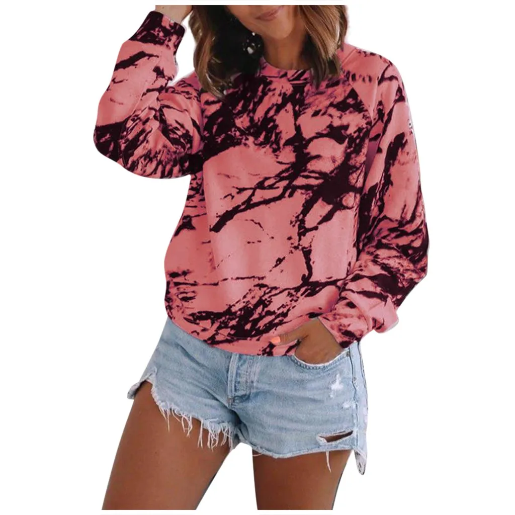 Мода 2020, Женская Повседневная Свободная Толстовка с О-образным вырезом, с принтом тай-дай, с длинным рукавом, одежда для женщин