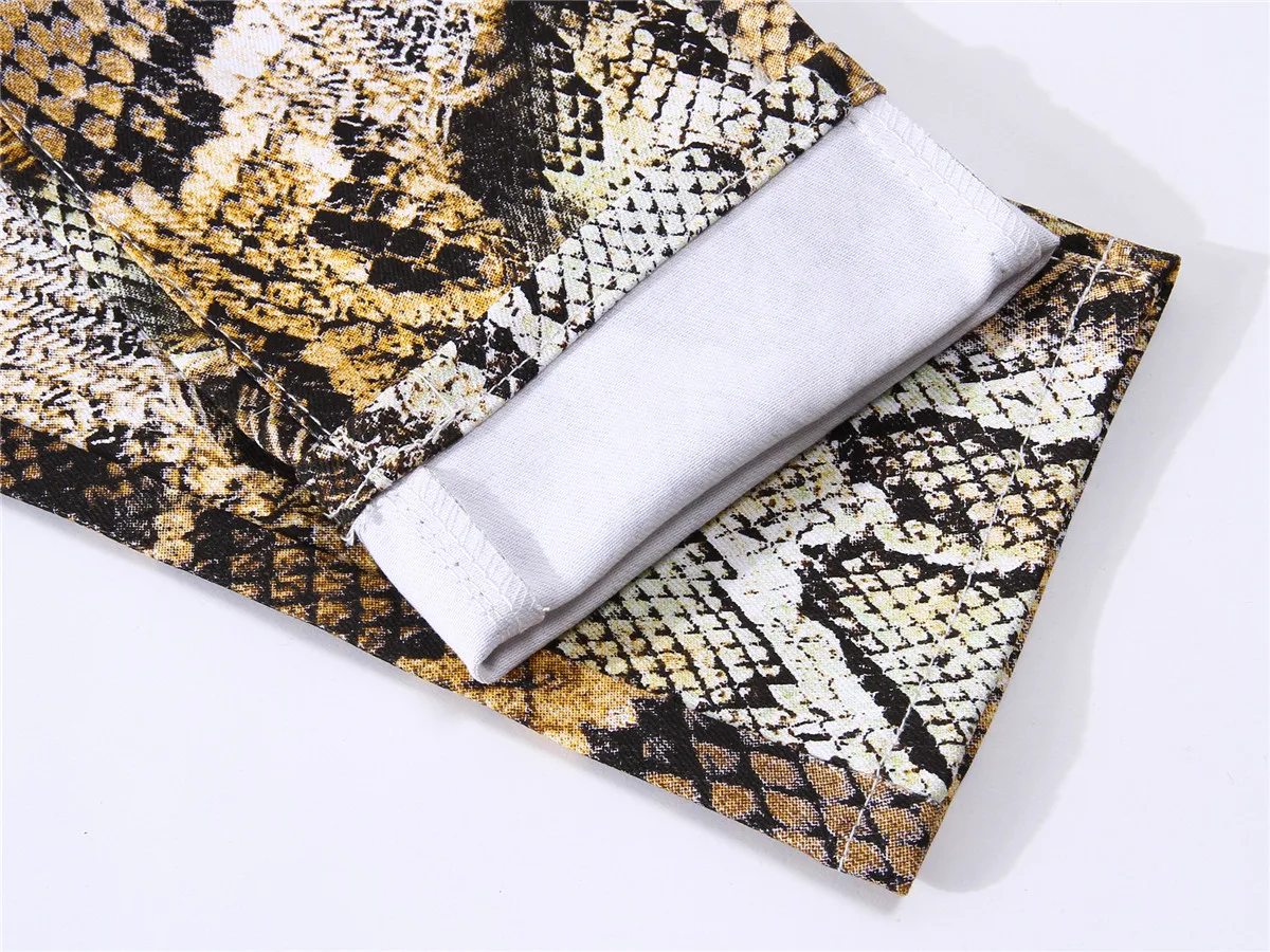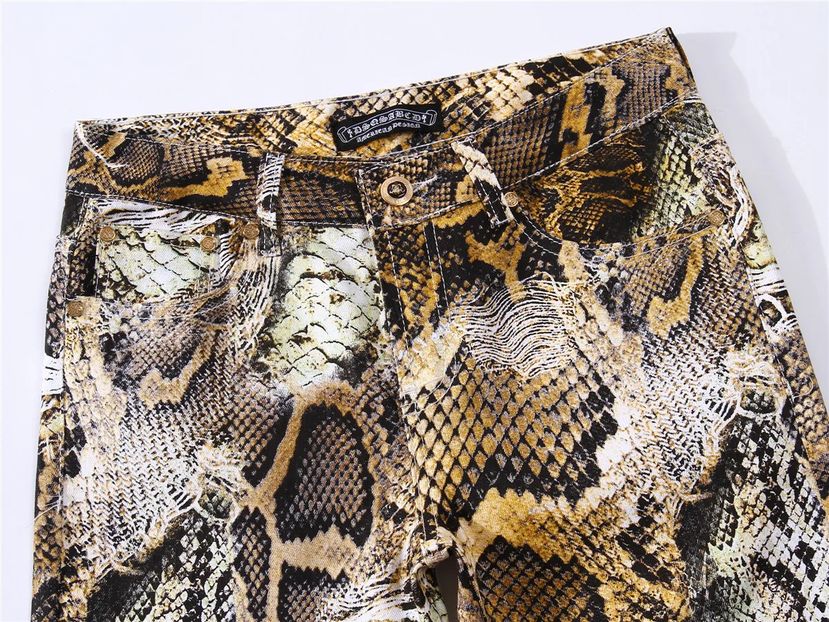 Мужские облегающие джинсы из змеиной кожи для ночного клуба, модные джинсы с принтом, джинсы для выступлений с изображением змеиной кожи, Стрейчевые джинсы с принтом