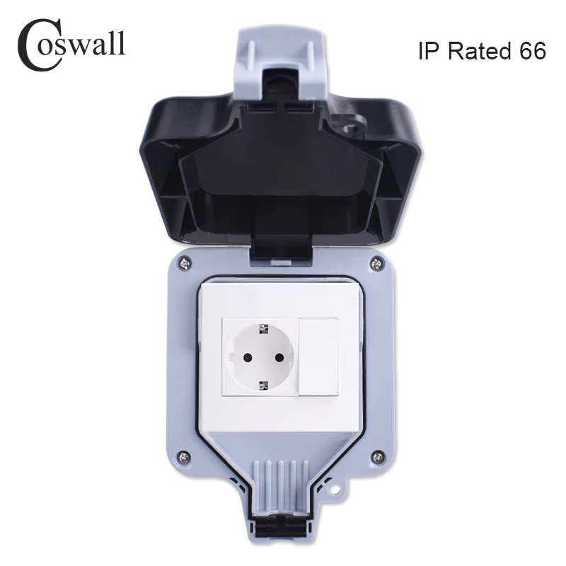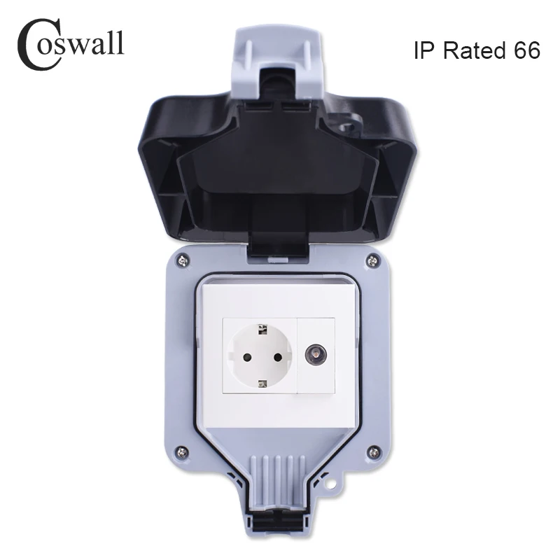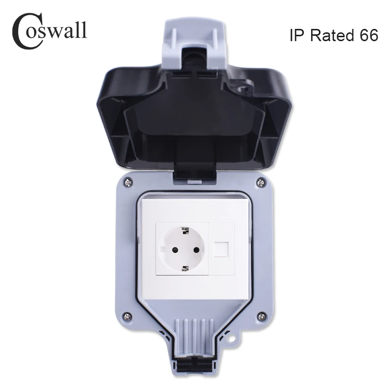 Coswall IP66 Водонепроницаемый открытый ящик настенная розетка стандарта ЕС с 1 банды выключательженский ТВ Jack CAT6 RJ45 данных Интернет розетки