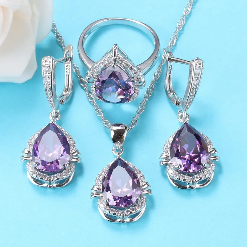 Женский ювелирный комплект из 3 предметов, серебро 925 пробы, 8 цветов