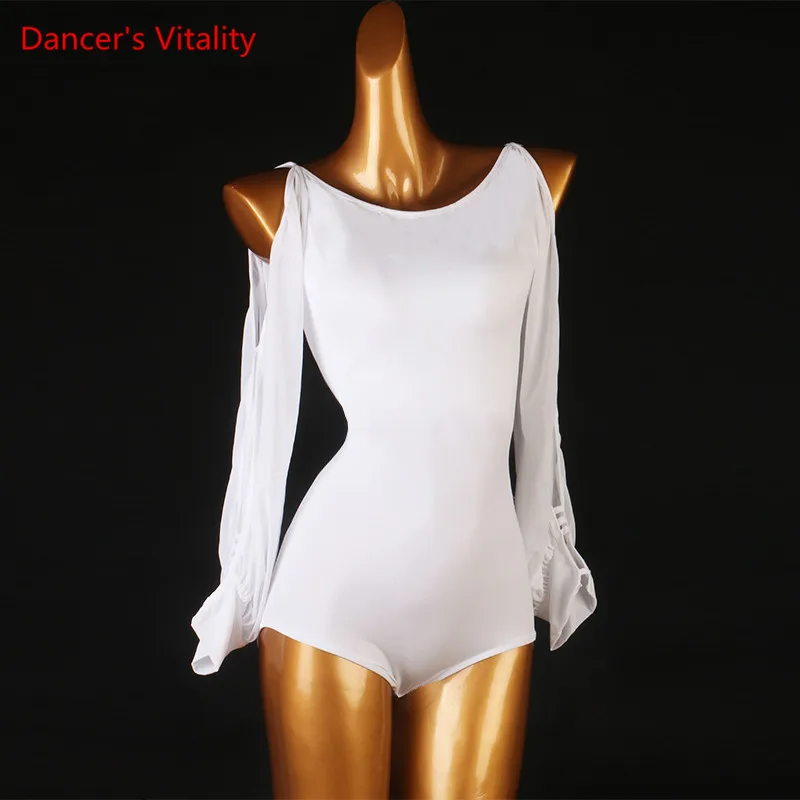 Топ женский для латиноамериканских танцев, элегантный боди с длинным рукавом, для взрослых и детей, для современных танцев, тренировочная одежда, комбинезон для выступлений на заказ