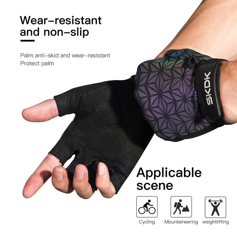 Основной материал: двустороннее суперволокно, спандекс, красочный светоотражающийПодходит для людей: обычныхПрименимые виды спорта: фитнес-Велоспорт, тяжелоатлетика, бадминтон, теннис, альпинизмПрименимые сценарии: Бег Спорт, фитнес оборудование, оздоровительный массаж, фитнес красота, спортивные тенденции, Велоспорт Спорт, туризм и кемпинг, спорт стрельбы, спортивные защитные принадлежности, корзина для ног Спорт, оборудование для игровых площадок, спортивные сумки для активного отдыха, рыбалки, настольного тенниса, бадминтона, тенниса, других видов спорта с мячамиПреимущества:1. В перчатках использовался высококачественный сетчатый материал2. Материал: используется 100% новый и высококачественный материал3. Прочный: прочный материал с подкладкой. Отлично подходит для профессиональных тренировок4. Дышащий материал: в перчатках используется сетчатый материал хорошего качества, который отличается высокой эластичностью и воздухопроницаемостью5. Широко применяется в тренажерном зале, фитнесе, бодибилдинге, спорте и активном отдыхе.