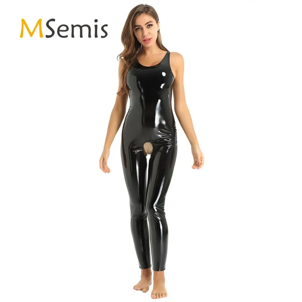 Женское нижнее белье, трико с открытой промежностью, боди, лакированная кожа, с U-образным вырезом, Клубная одежда, костюм-кошка, трико, комбинезон