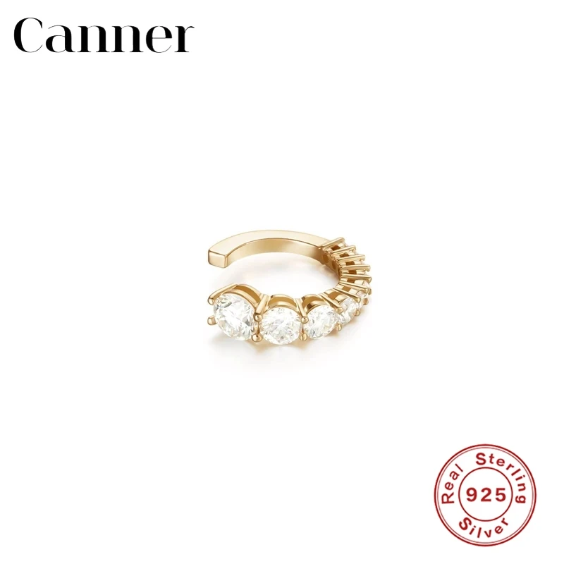 Настоящее 925 пробы Серебряная Ушная манжета C-образные серьги AAAAA циркониевый зажим для женщин, Изящные Ювелирные изделия, наручники без пирсинга, W5