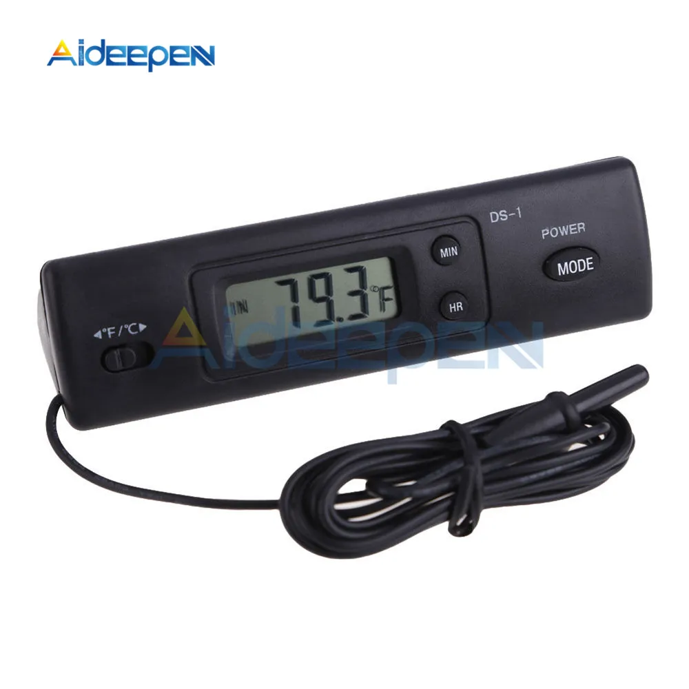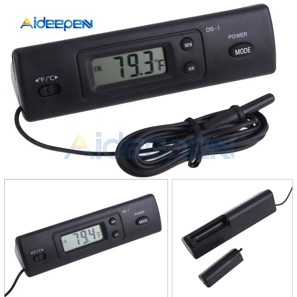 2. Tepy: электронный цифровой термометр3. Размер: 117.5x30x27.2мм4. Цвет: черный5. Мощность: DC1.5V AAA (не входит в комплект)6. Двойные сенсорные наконечники, позволяют измерять температуру в двух местах7. Переключение режима между по Цельсию и по Фаренгейту8. Разработан с функцией цифровых часов9. Ультратонкий и компактный, удобный в установке10. Провод чувствительных наконечников является водонепроницаемым11. Диапазон измерения температуры: -50 градусов ~ + 80 градусов