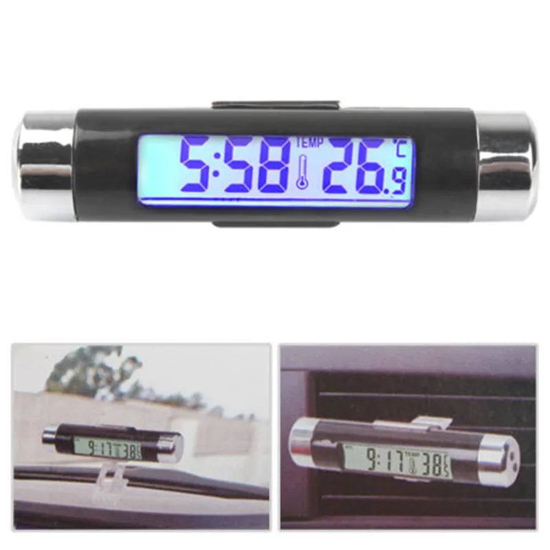 2 в 1 Автомобильный Автоматический термометр часы календарь ЖК-цифровой дисплей экран клип-на цифровой синий задний светильник автомобильные аксессуары
