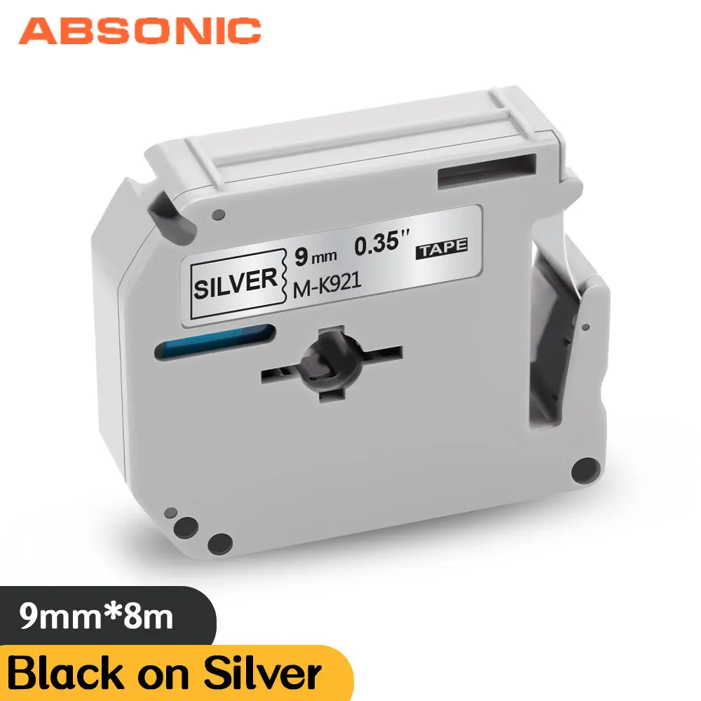 Absonic MK-921 MK 921 черный на серебристом 9 мм 3/8 "запечатанных лент для Brother P-Touch PT-M95 PT-65 PT-70 PT-80 PT-85 PT-90 этикетировщик