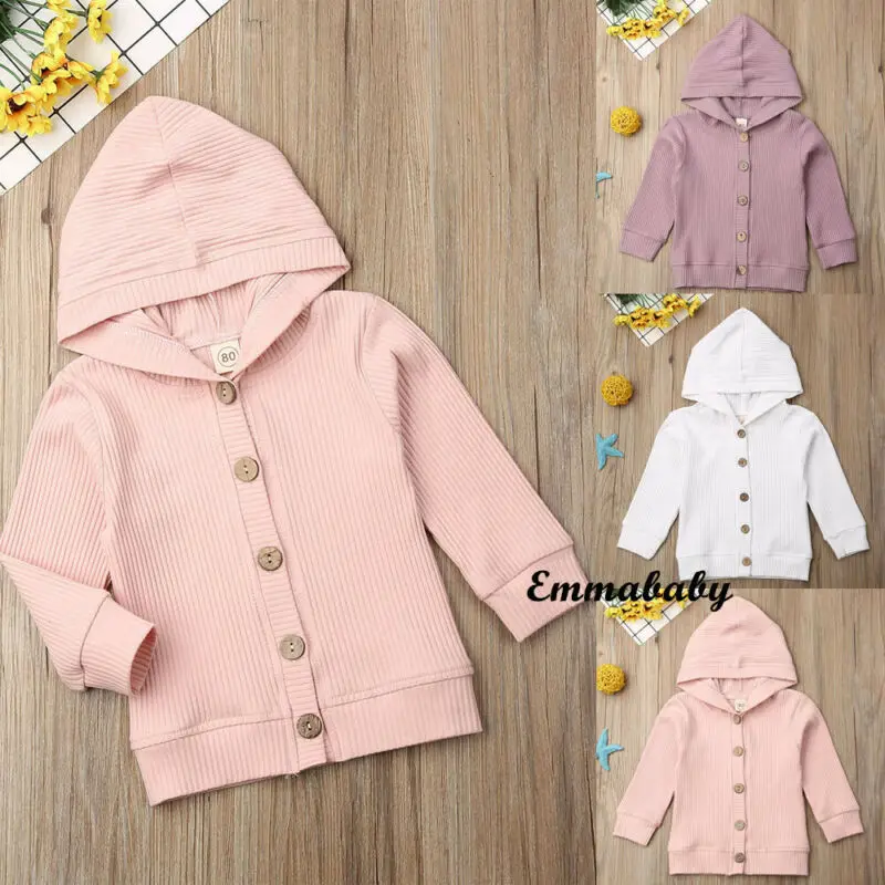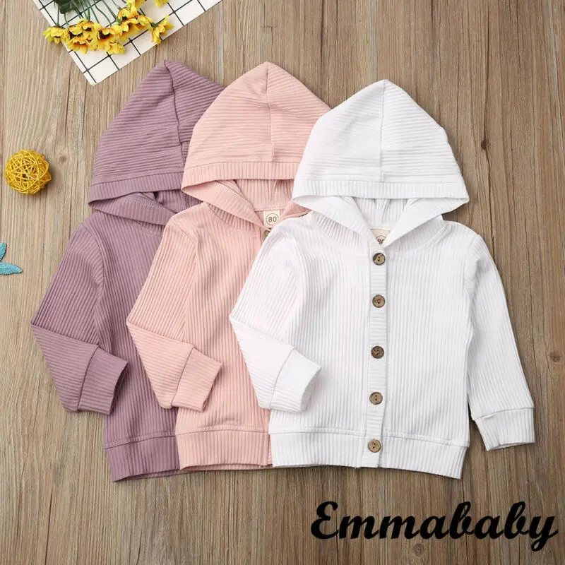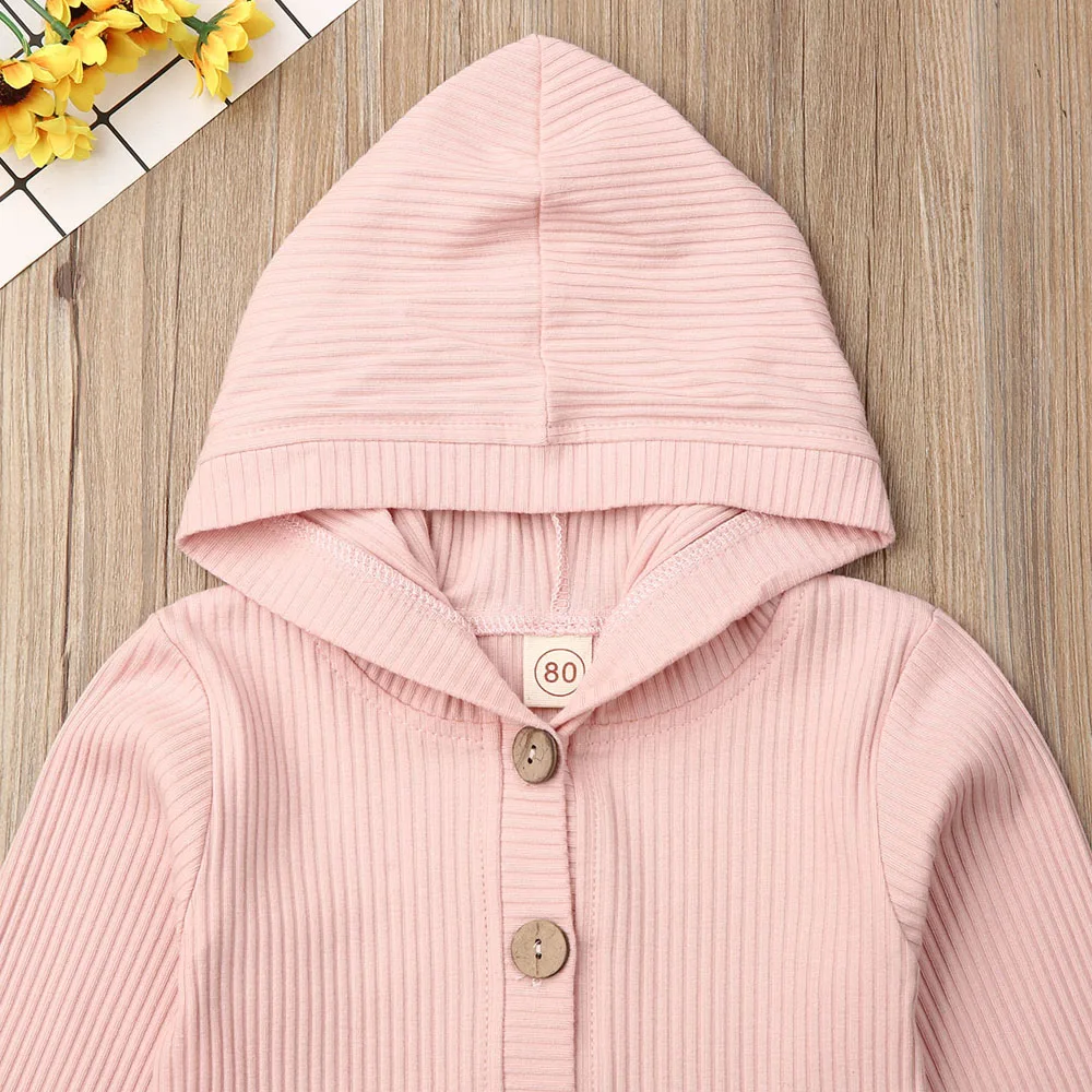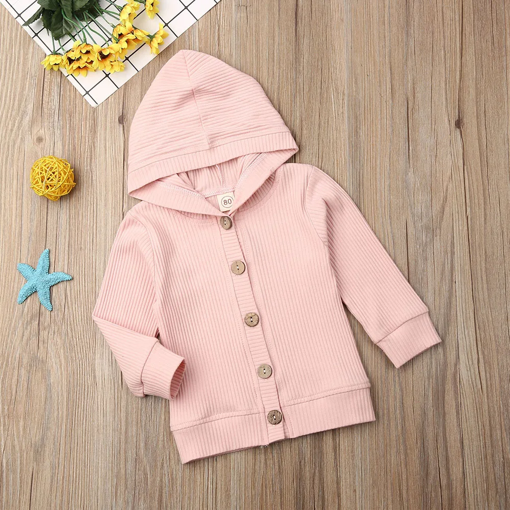 USPSбыстрая доставка, куртка-кардиган для маленьких девочек от 0 до 24 месяцев однотонная хлопковая верхняя одежда с капюшоном и длинными рукавами, однотонные пальто на осень и зиму