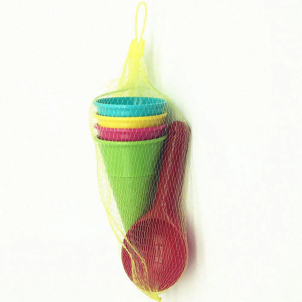 Применение: Дети 2-6 лет Материал: ПП Цвет: как показано Размер: прибл. Чашка для мороженого 11*6,3 см ложка 15*6,5 см Упаковочный лист: 5 шт./лот пляжные игрушки