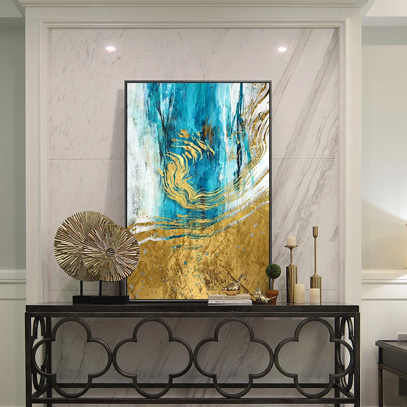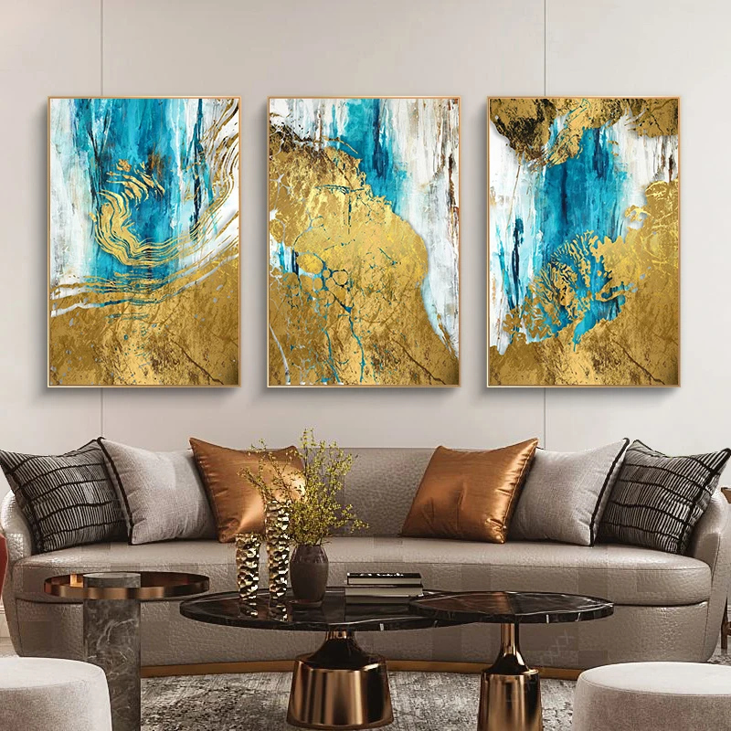 Современная абстракция синяя и Золотая постеры и печать холст картина украшение стены домашний декор фотографии для гостиной Безрамное