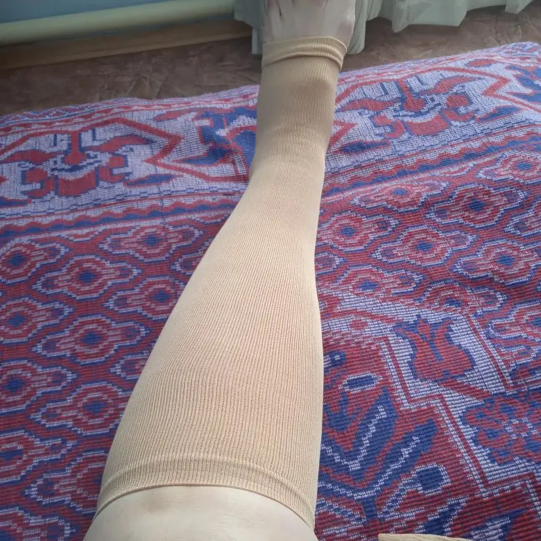 Хорошие гольфы. Компрессия не очень сильная, но я такую и хотела (у меня есть уже пара таких же , их прям с трудом надеваешь). У меня полные ноги - гольфы на них надеваются легко, доходят до колен. Доставлены быстро на Новую почту. Спасибо продавцу