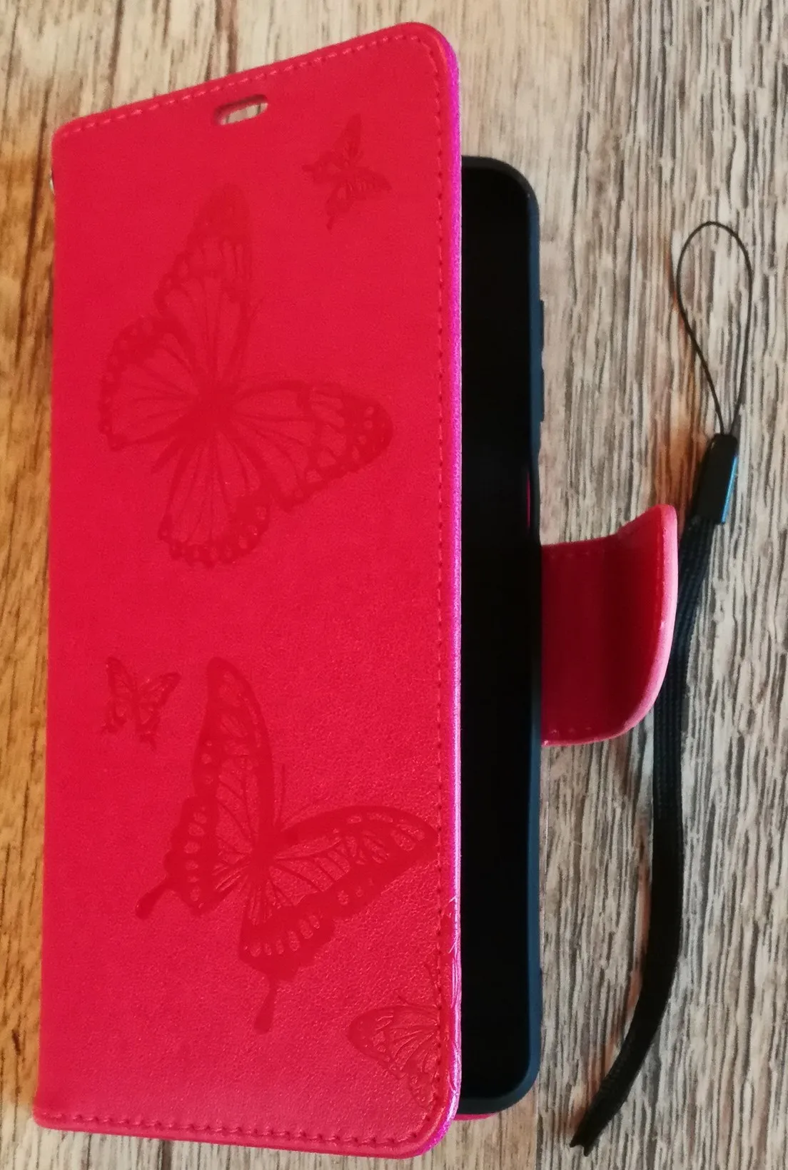 Чехол пришёл очень быстро, дней 8. Всем доволен. В чехле есть отверстие, насколько я понял, для лямки для ношения на руке. Лямки в комплекте нет, не должно было быть?
