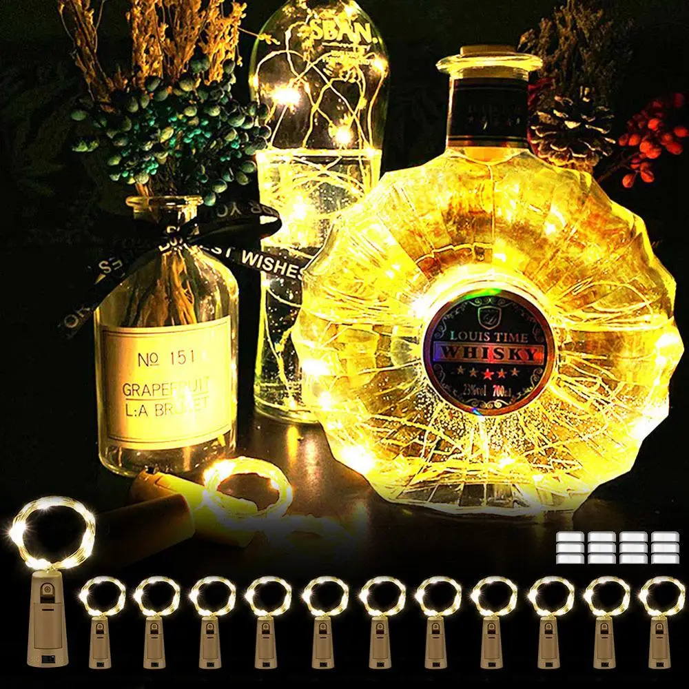 2 м 20 светодиодов гирлянда винная бутылка нить с пробкой лампы на батарейках медная проволока красочные сказочные огни струнная лампа для вечерние украшения свадьбы