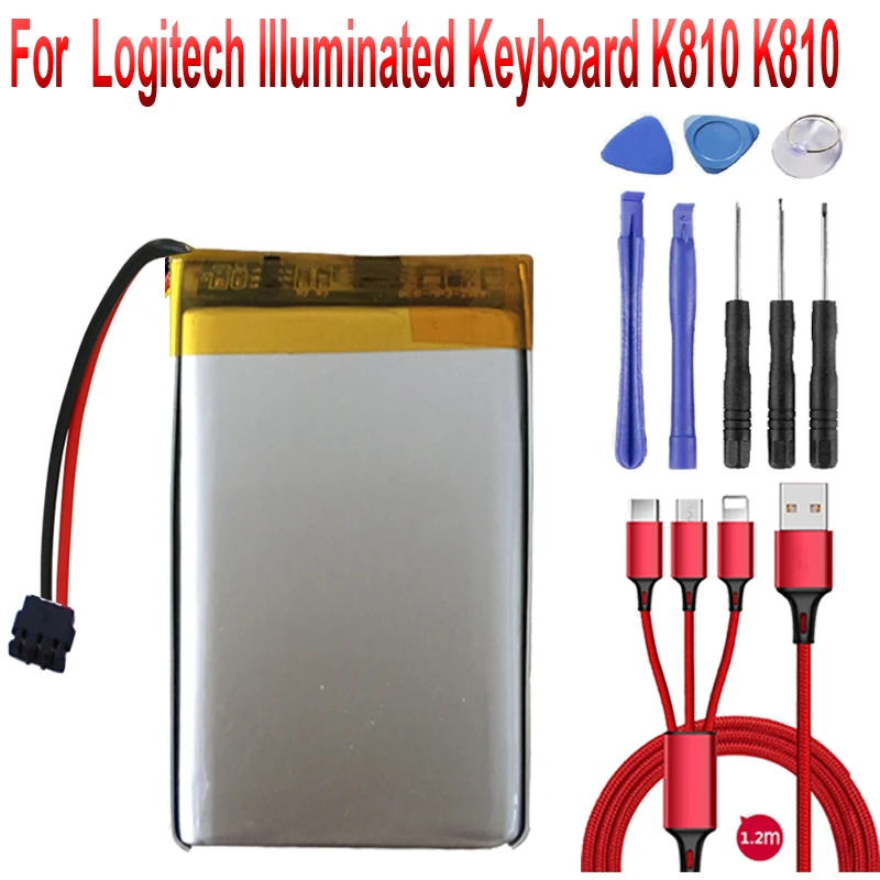 Аккумулятор 1800 мАч 533-000114 для Logitech IIIuminated Keyboard K810 K810 + USB кабель + Инструменты