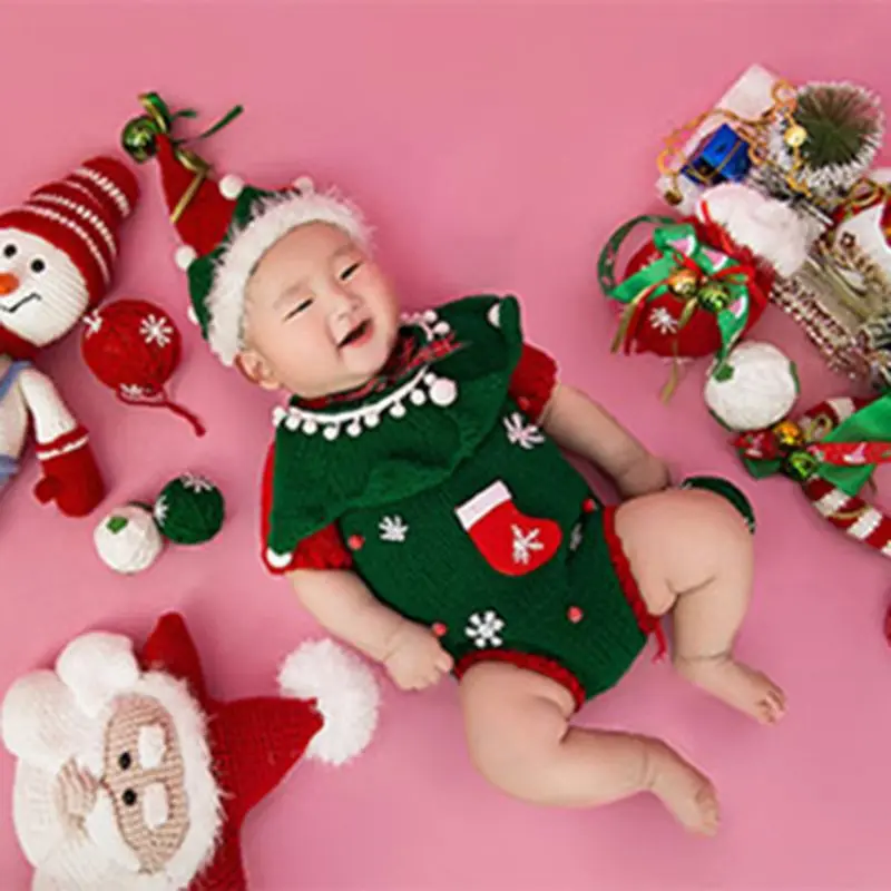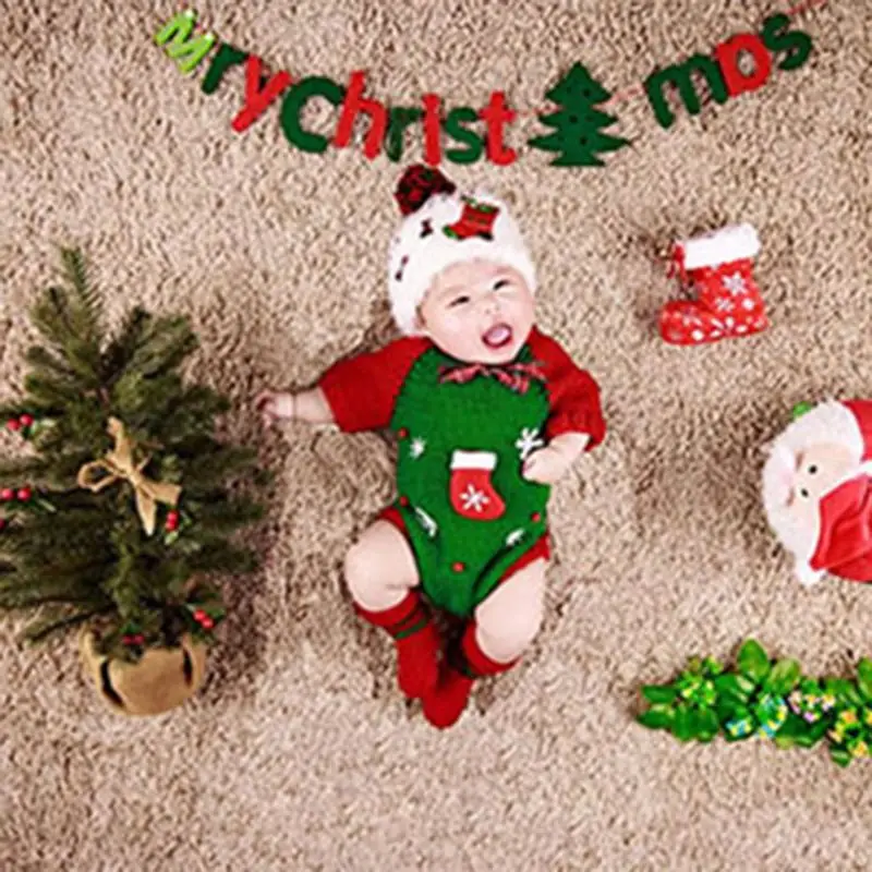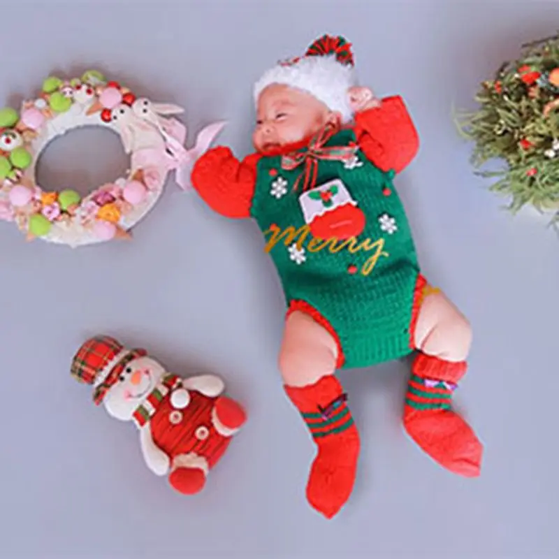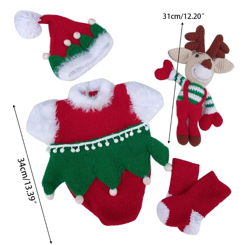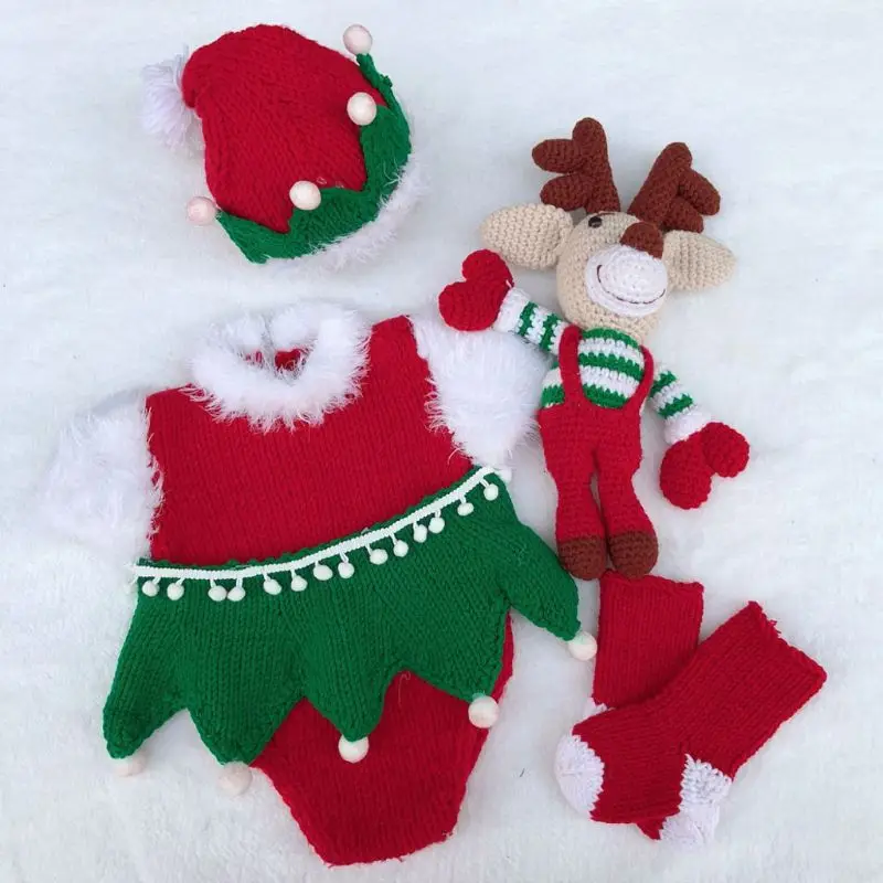 4 шт./компл. вязаные наряды для новорожденных Рождественский костюм Детская шапка + носки + кукла лося + комбинезон реквизит для фотосессии