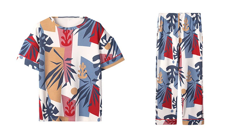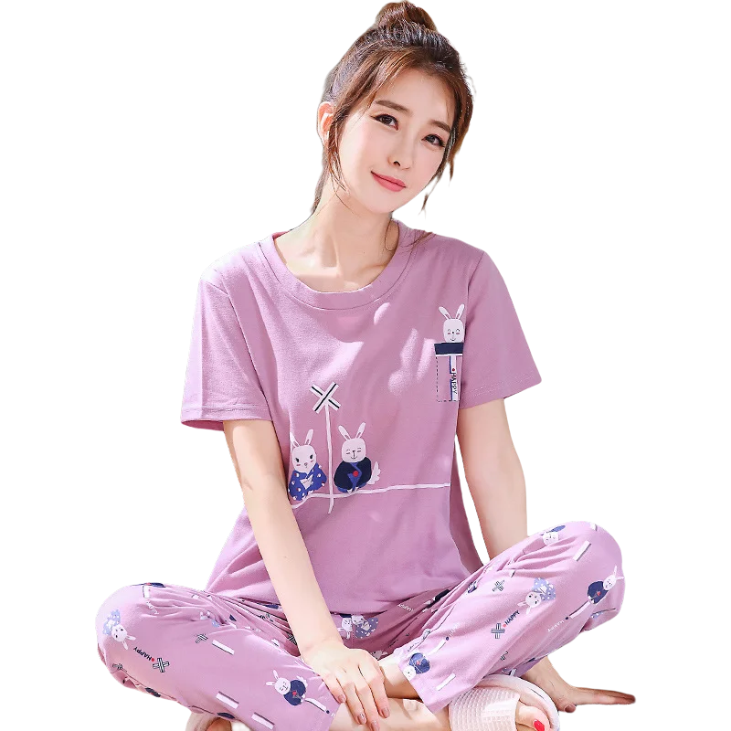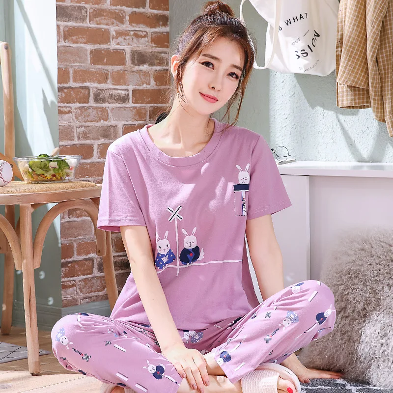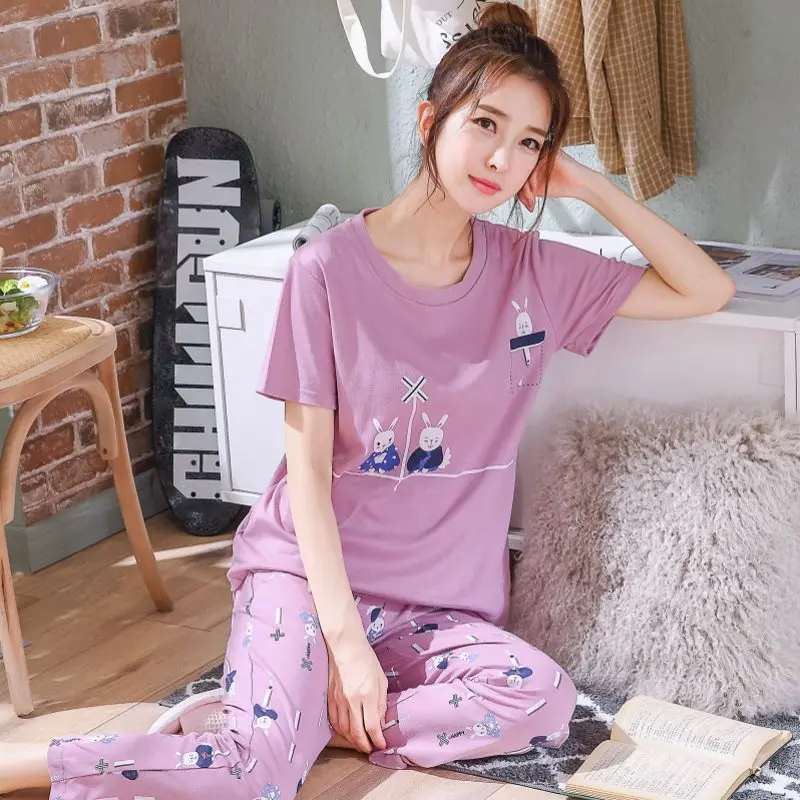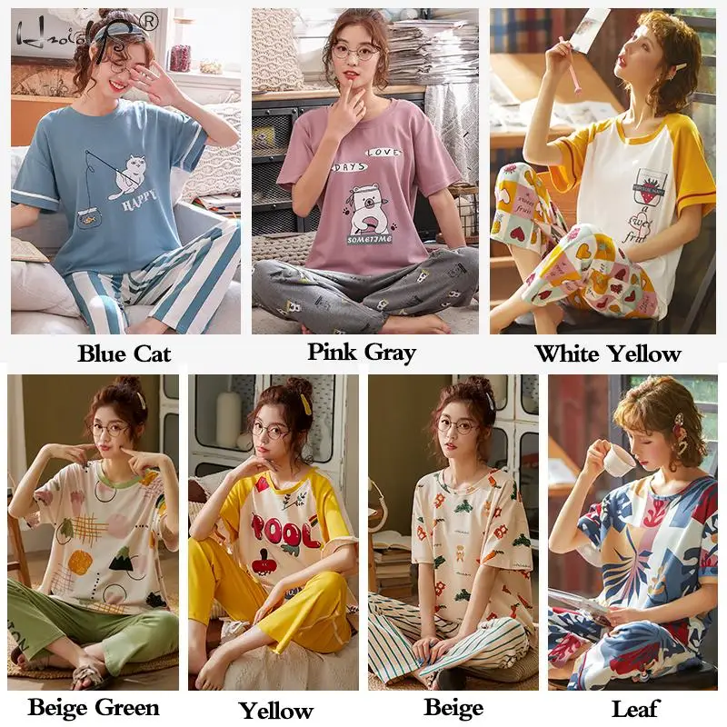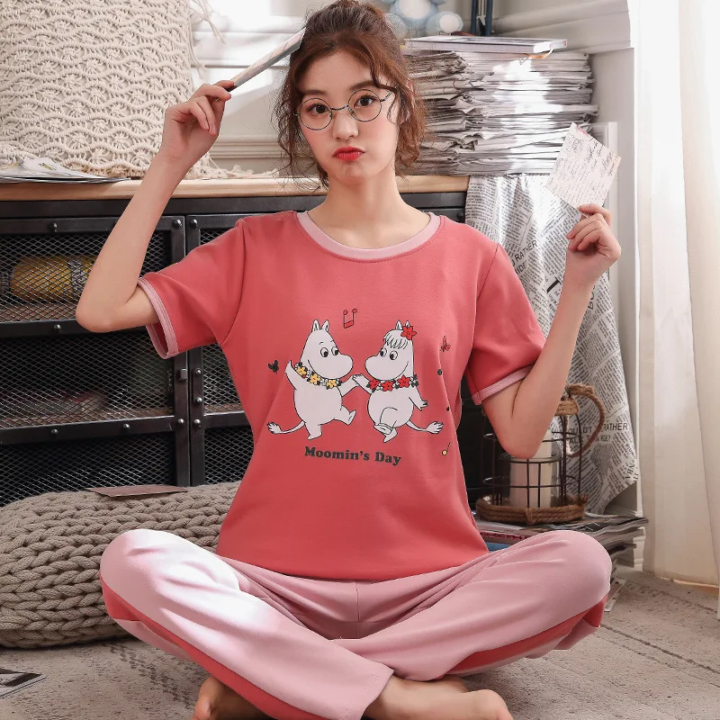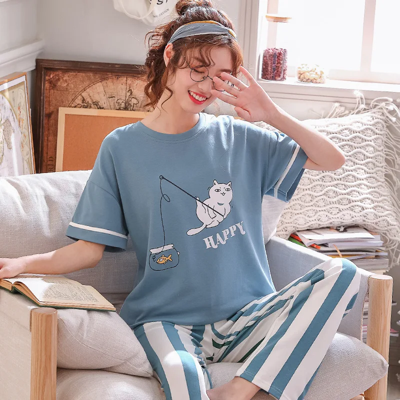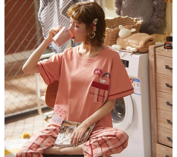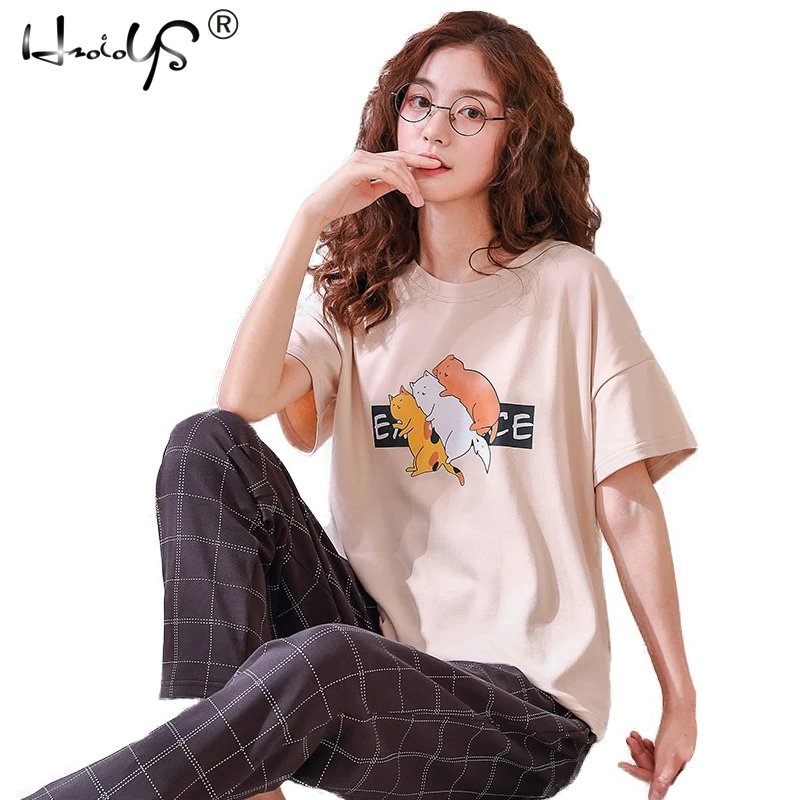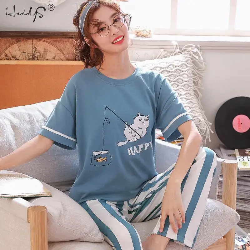Женский пижамный комплект, теплая Пижама, осенняя Пижама с коротким рукавом + длинные брюки, комплект пижам, милая Пижама, домашний сервис