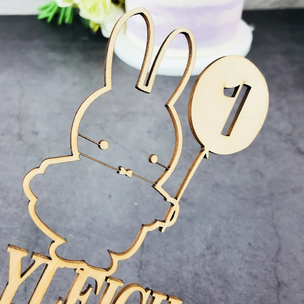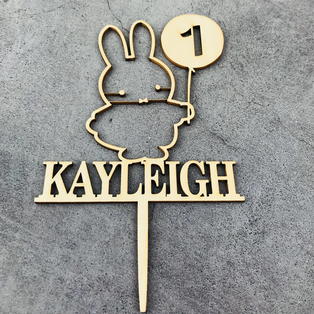 Персонализированный Деревянный милый кролик на день рождения торт Топпер, пользовательское имя и возраст Акриловое Золото зеркало, кролик день рождения торт Декор