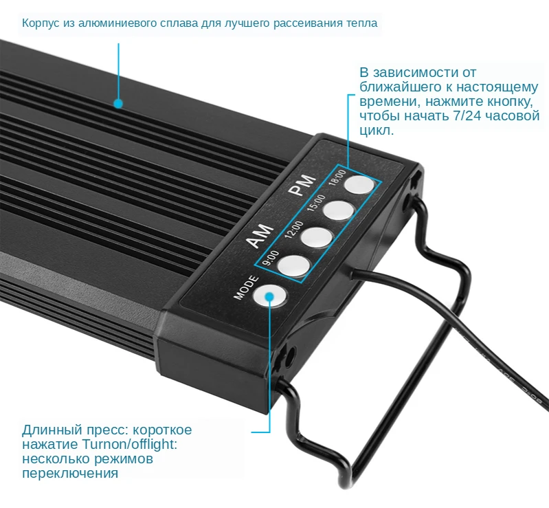 Лампа хорошая, муж доволен. Сама маловата, но универсальные крепления спасают. Много режимов работы, для аквариумов с растениями то, что надо