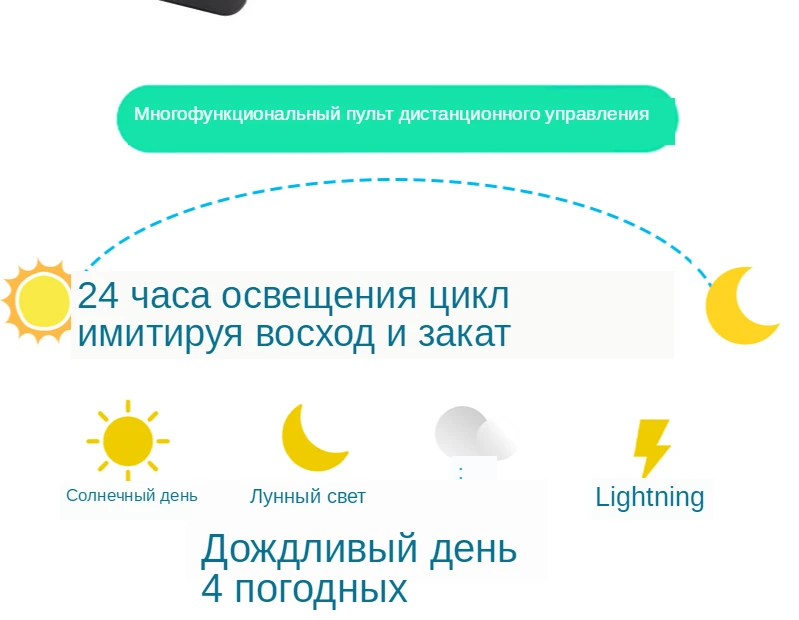 Отличный продукт, имитирует солнечный день, включая ночь. Также есть время с функцией молнии, красиво. Очень доволен