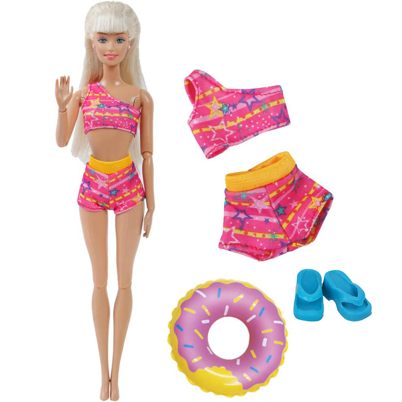 1 комплект для плавания аксессуары для волос ручной работы кукла в купальнике бикини платье + случайный плавательные круги судна + 1x одежда тапочки для куклы Барби Детские игрушки