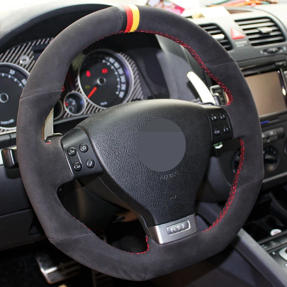Сшитые вручную черные замшевые аксессуары чехол рулевого колеса автомобиля для Volkswagen Golf 5 Mk5 GTI VW Golf 5 R32 Passat R GT 2005