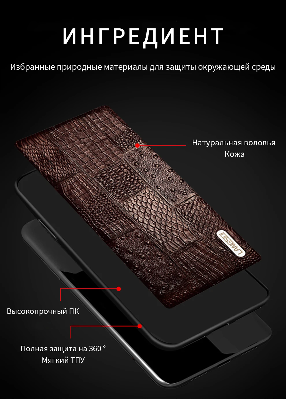 1. Материал задней части: 100% Натуральная воловья кожа. 2. Внутренний материал: PC + TPU. 3. Функция: Отличная защита от грязи, царапин и повреждений. 4.100% ручной работы, 100% новый и хорошего качества. 5. Отличный подарок для вашего любимого или самого себя. Пожалуйста, не беспокойтесь о том, что изображение не показывает камеру, когда вы получаете продукт, это идеальное сочетание с точностью расположения отверстия камеры.