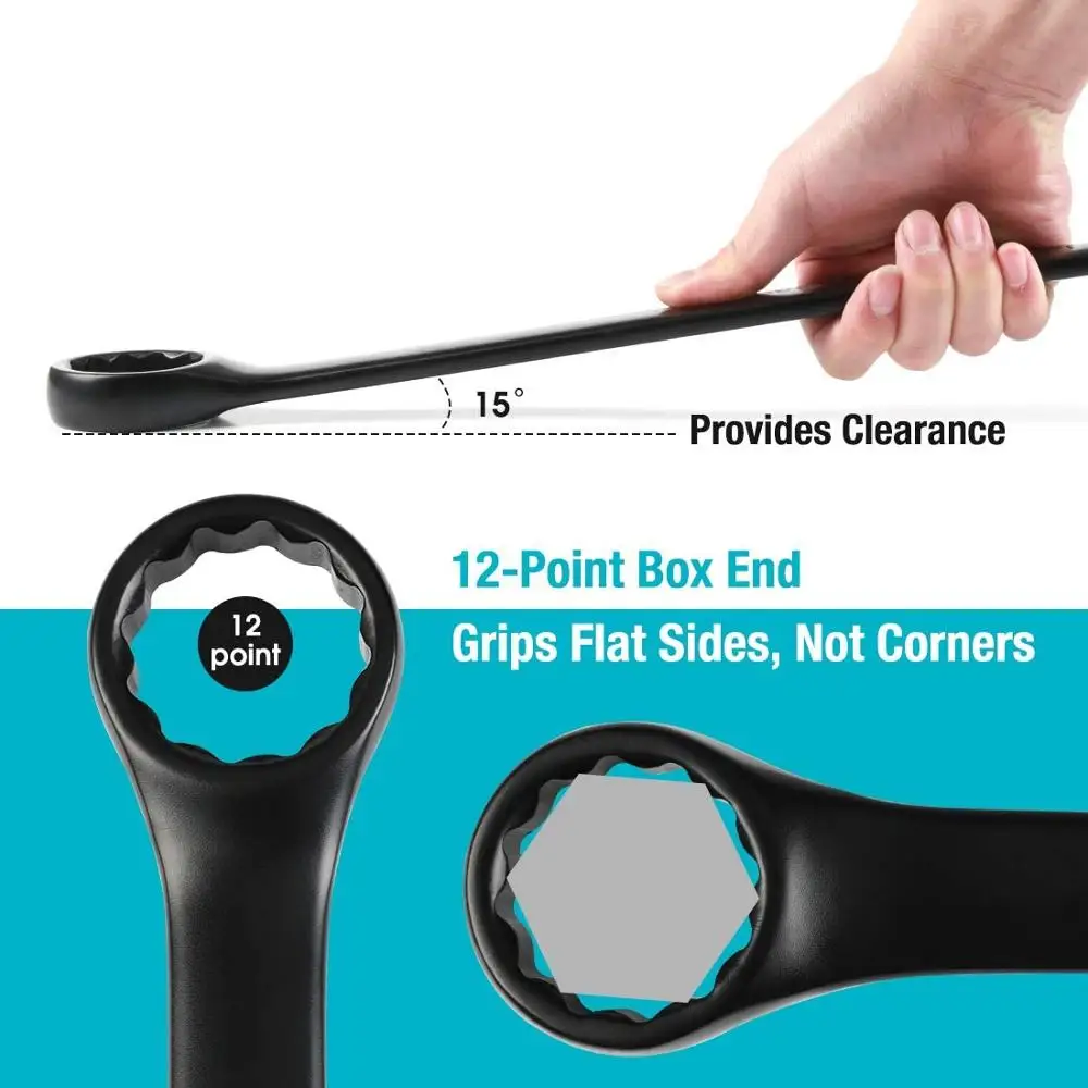 Черный зажимные метрические промышленные Класс Шестерни гаечный ключ с трещоткой, полированный хром, 12-точки, инструменты для ремонта автомобилей ручной инструмент ключи, дюймовый стандарт набор