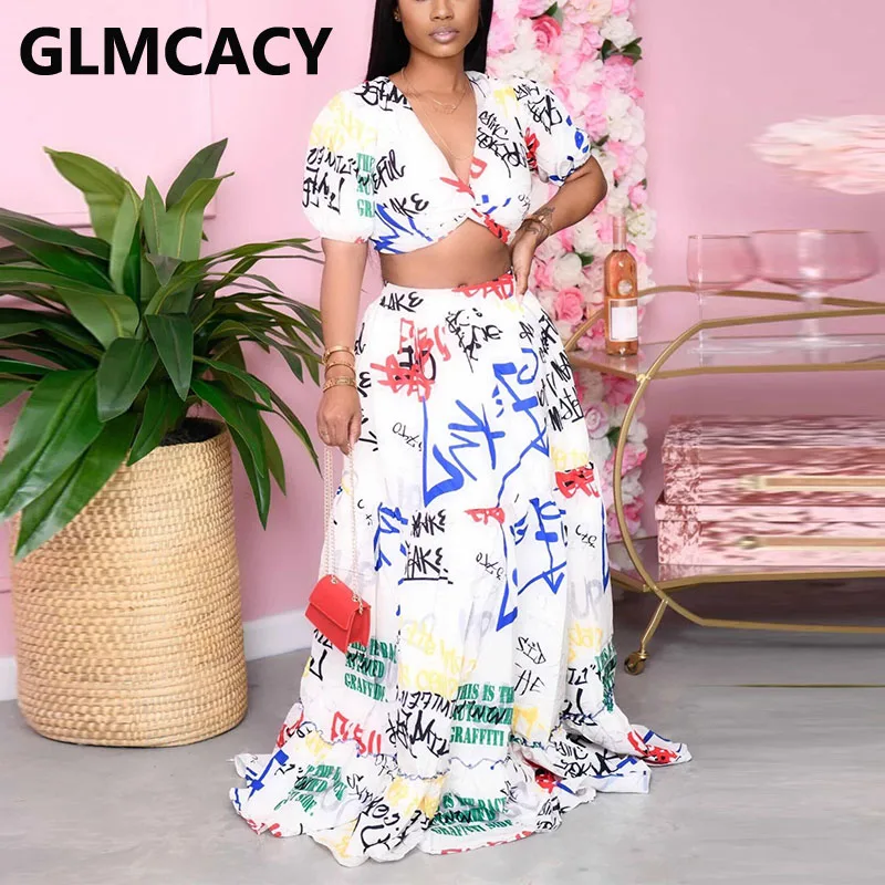 Женский комплект из двух предметов с абстрактным принтом, укороченный топ и Макси-юбка