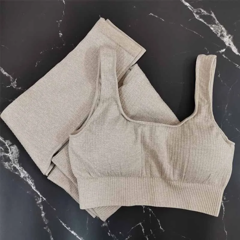 Бесшовный комплект для йоги, спортивные бюстгальтеры, штаны для йог...