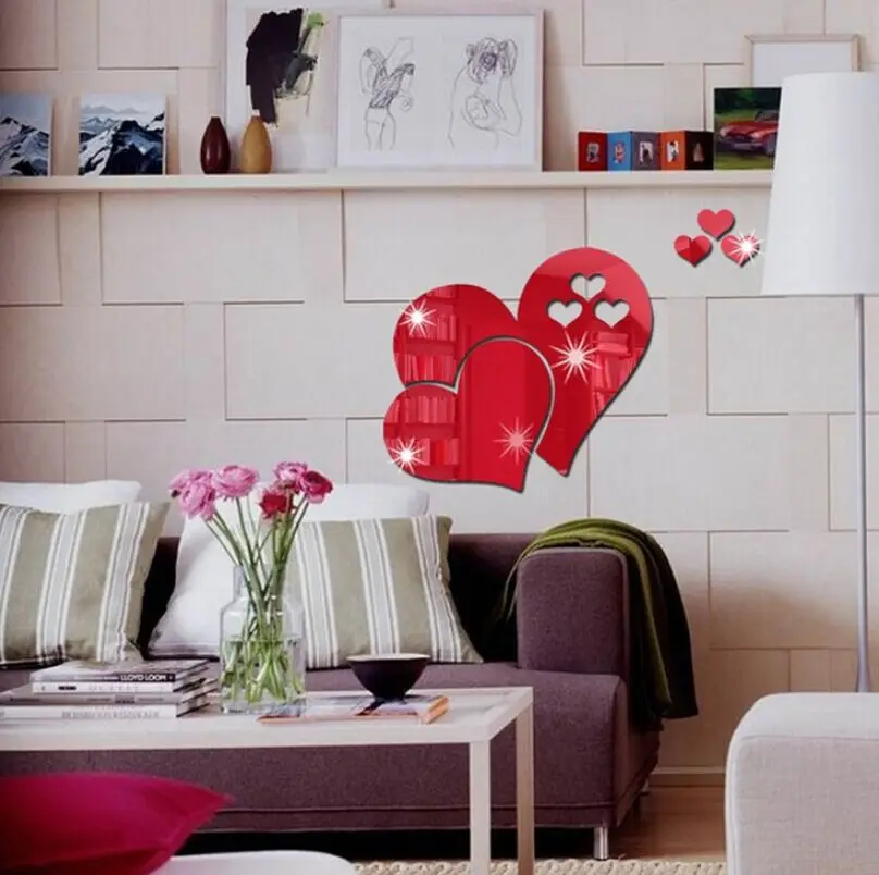 5 шт. зеркальные наклейки в форме сердца, наклейки на Хэллоуин, Рождество, атмосферу, украшение для дома, зеркальные настенные наклейки