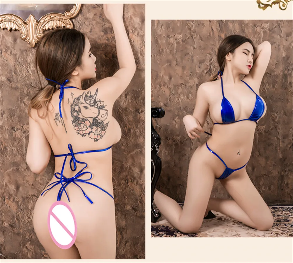 Сексуальное микро-бикини из лакированной кожи однотонный бандажный Регулируемый супер маленький сексуальный комплект бикини купальник женский купальник бикини