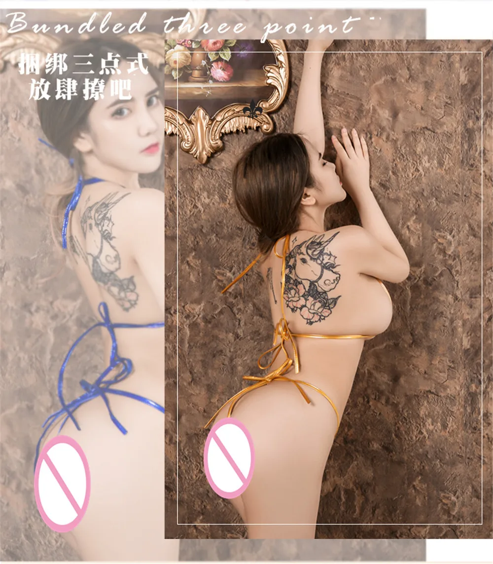Сексуальный микро бикини 2019 из лакированной кожи чистый цвет Банд...