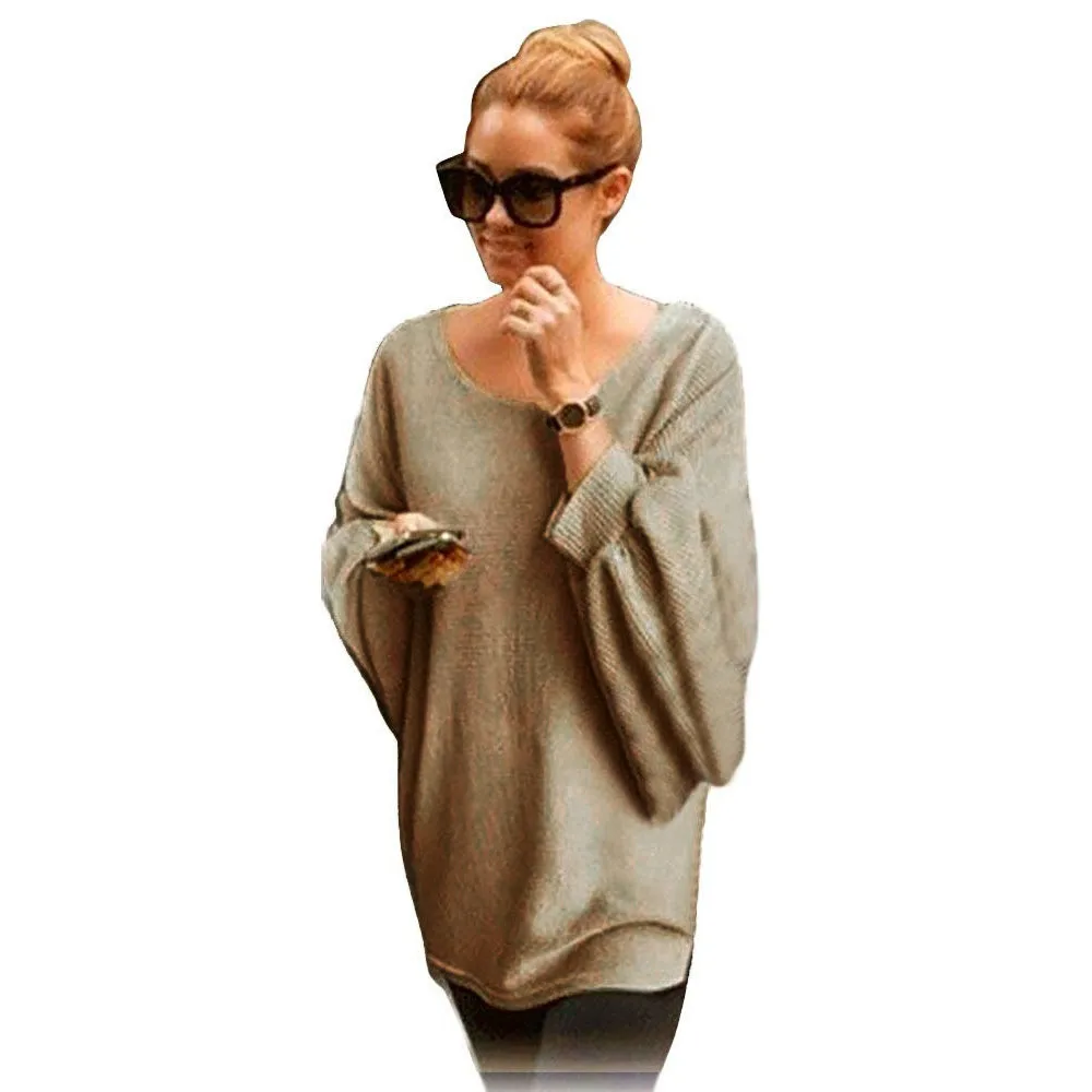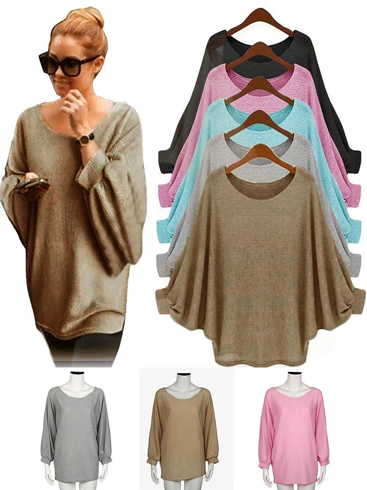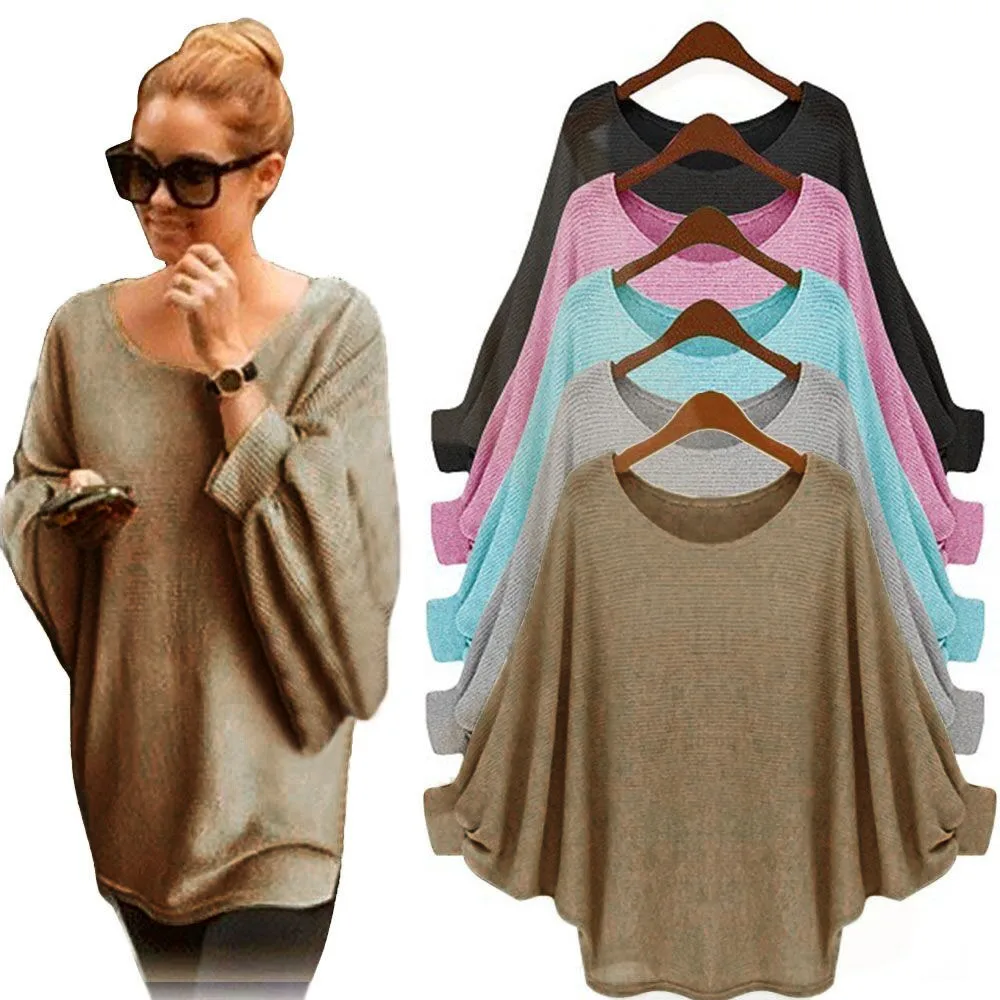 Осенний тонкий свитер для женщин, повседневный однотонный, большой, летучая мышь, вязаный, Новый Модный пуловер, свободный свитер, 5 цветов, быстрая доставка