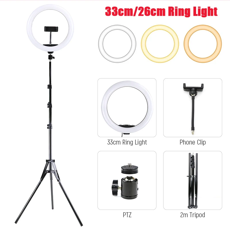 Светодиодный кольцевой светильник для видео, Селфи, со штативом, 33 см, 26 см