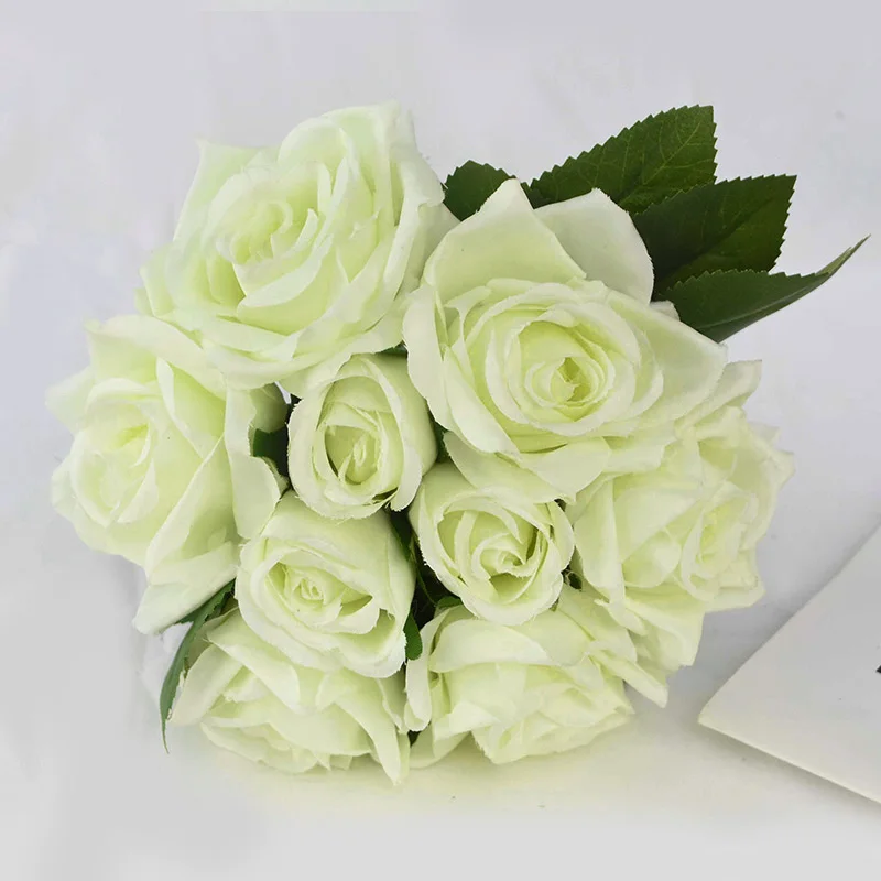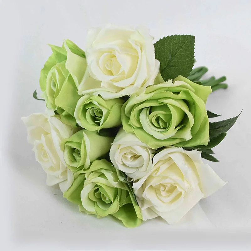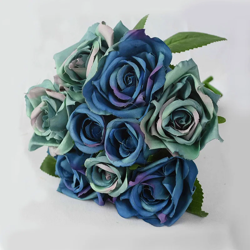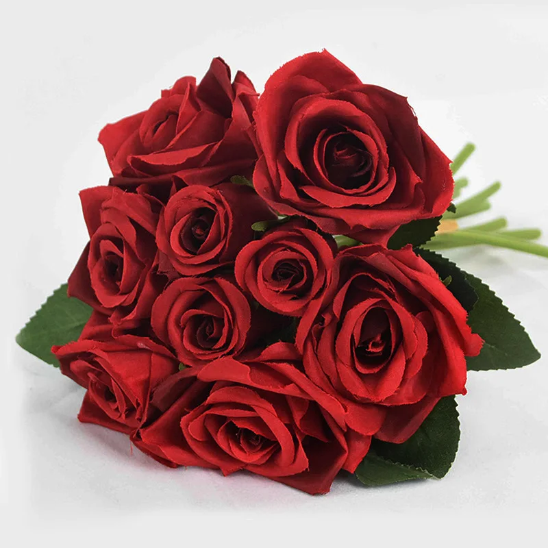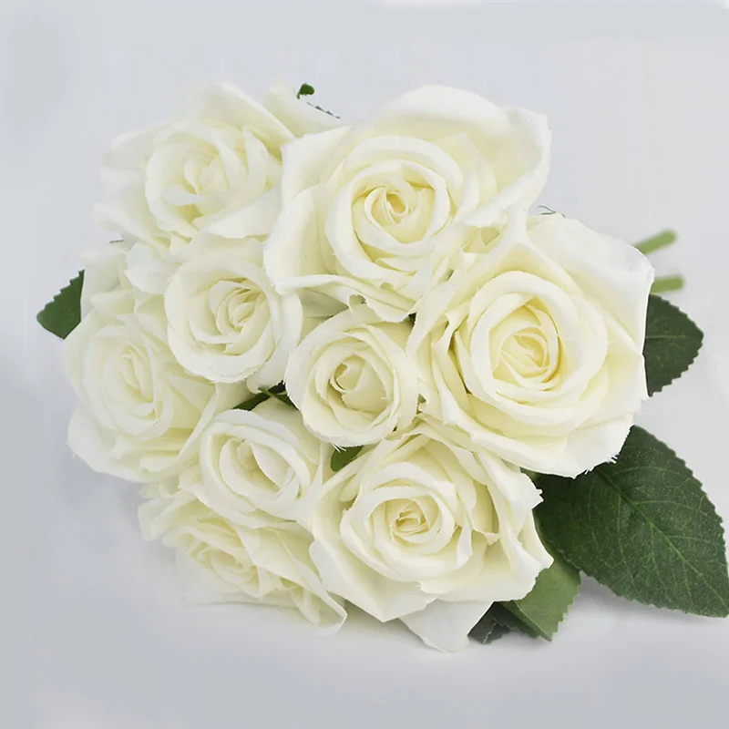 Букеты из шелковой розы 9 головок, искусственные цветы на голову, Свадебный букет невесты, для украшения дома, сада, дня рождения